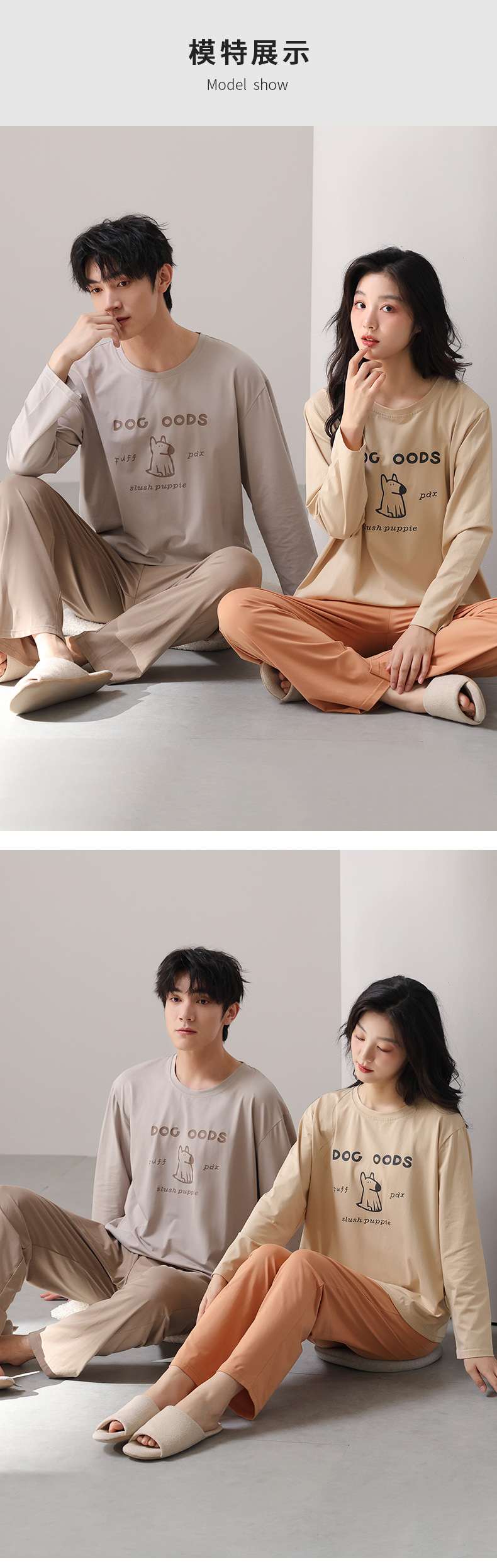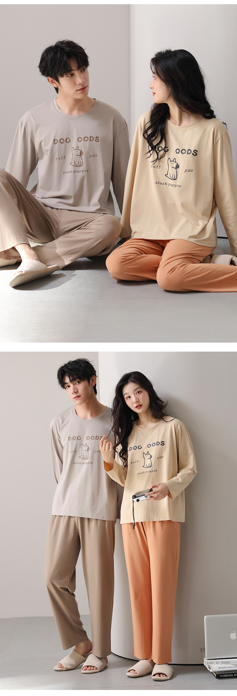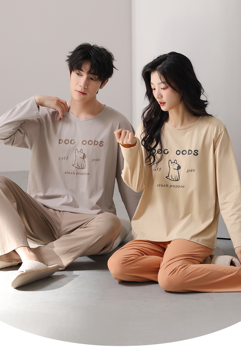 가을 새로운 한국 스타일 순면 커플 잠옷 긴 소매 남성용 라이크라 코튼 홈 옷 귀여운 만화 여성 가을과 겨울