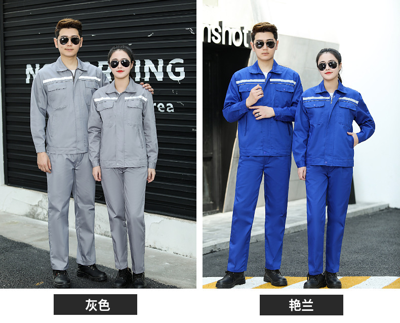 봄과 가을 긴 소매 반사 정전기 방지 툴링 주유소 작업 옷 자동 수리 작업장 노동 보호 의류 세트 로고 인쇄스토어 가기
