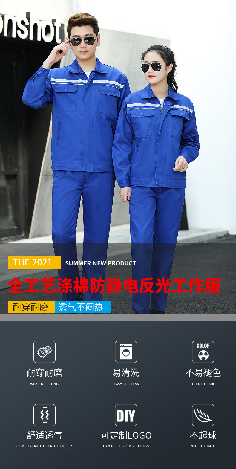 批发春秋长袖反光防静电工装工作服套装加油站汽修车间劳保服印绣