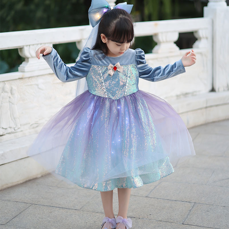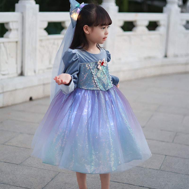 24 가을 겨울 소녀 냉동 빛나는 공주 원피스 어린이 하이 엔드 인어 속편 생일 원피스 원피스스토어 가기