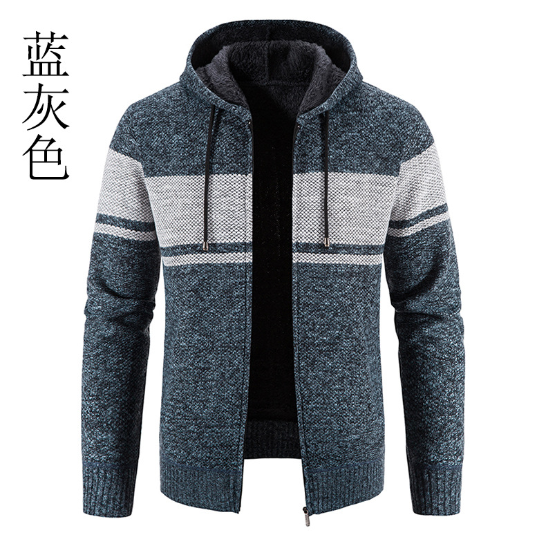 대외 무역 2024 봄과 가을 새로운 남성 패션 후드 기모 두꺼운 스웨터 니트 카디건 남성 코트 조수스토어 가기
