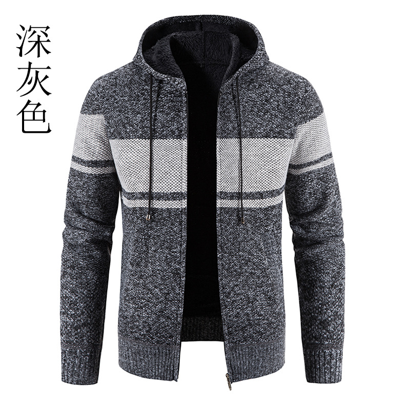 대외 무역 2024 봄과 가을 새로운 남성 패션 후드 기모 두꺼운 스웨터 니트 카디건 남성 코트 조수