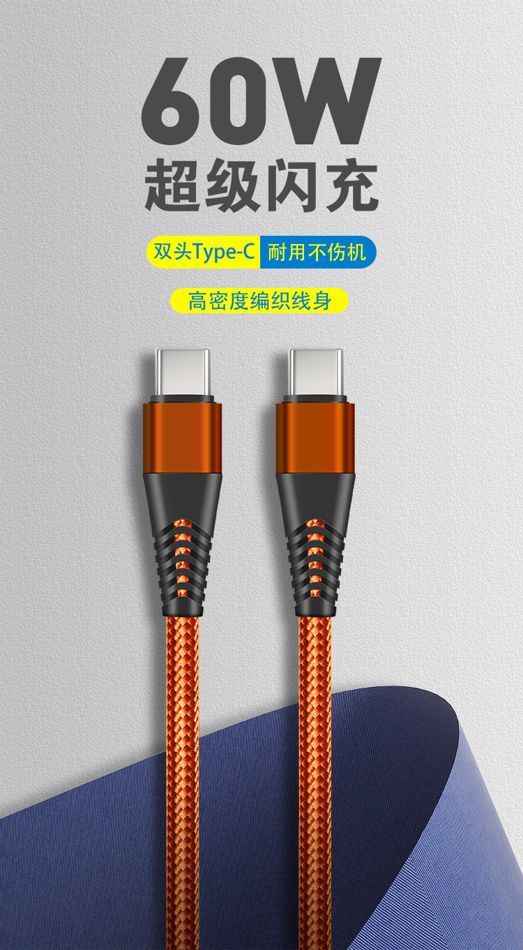 C-c 빠른 충전 휴대 전화 데이터 라인 PD60W 꼰 라인 CTOC 애플 16 화웨이 TYPEC 더블 C 충전 라인