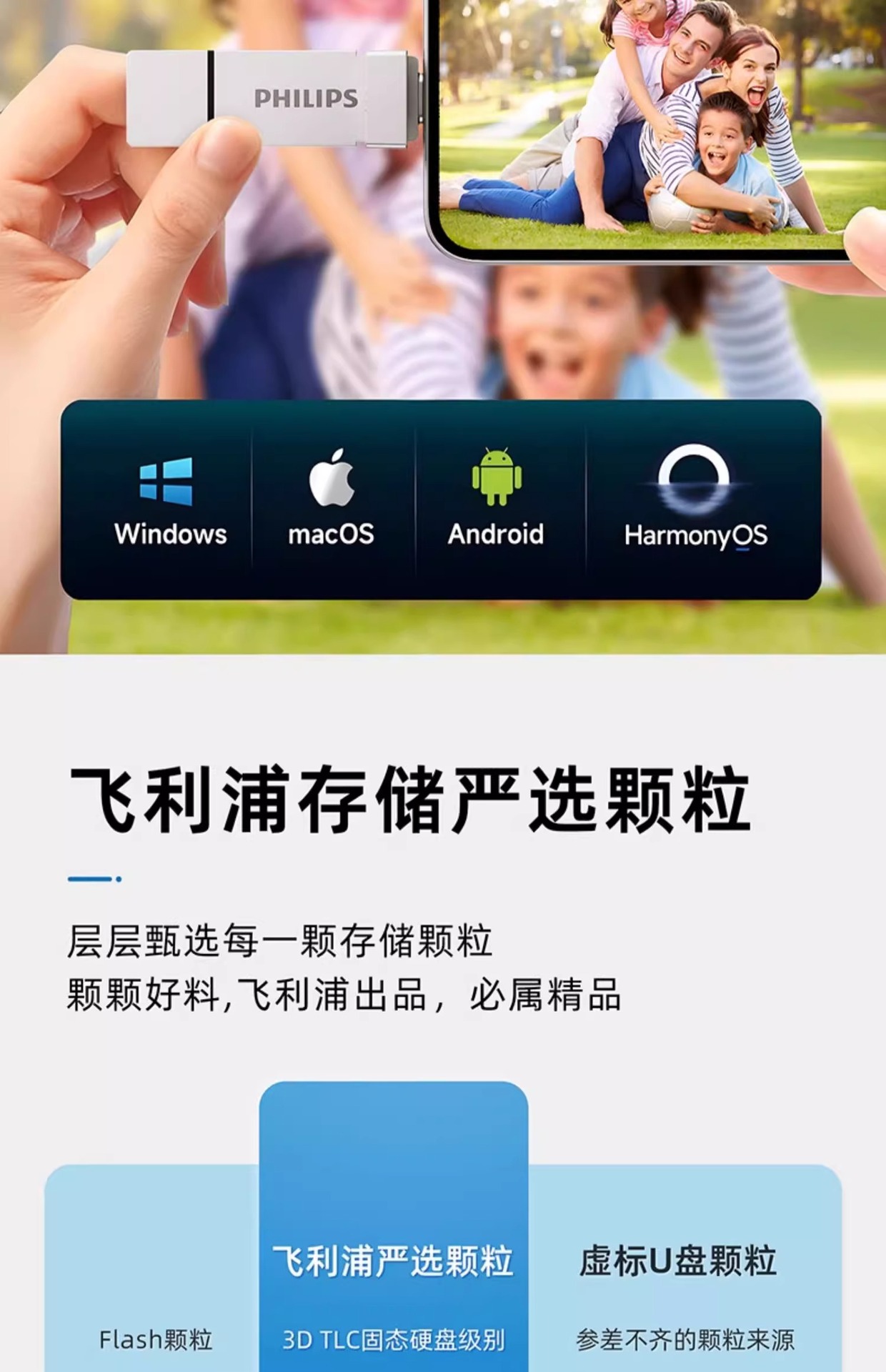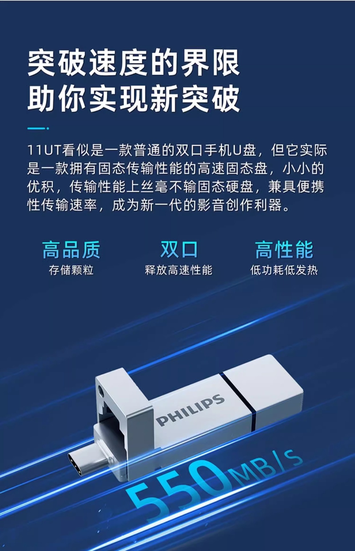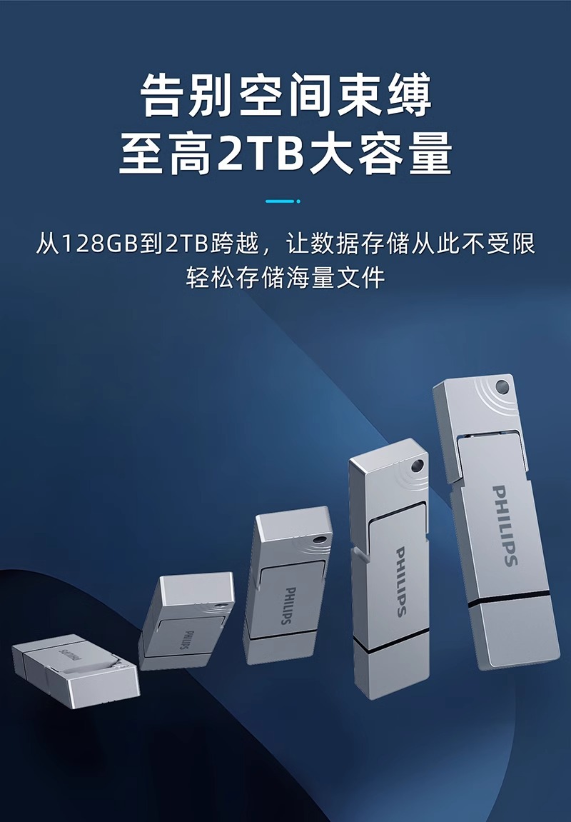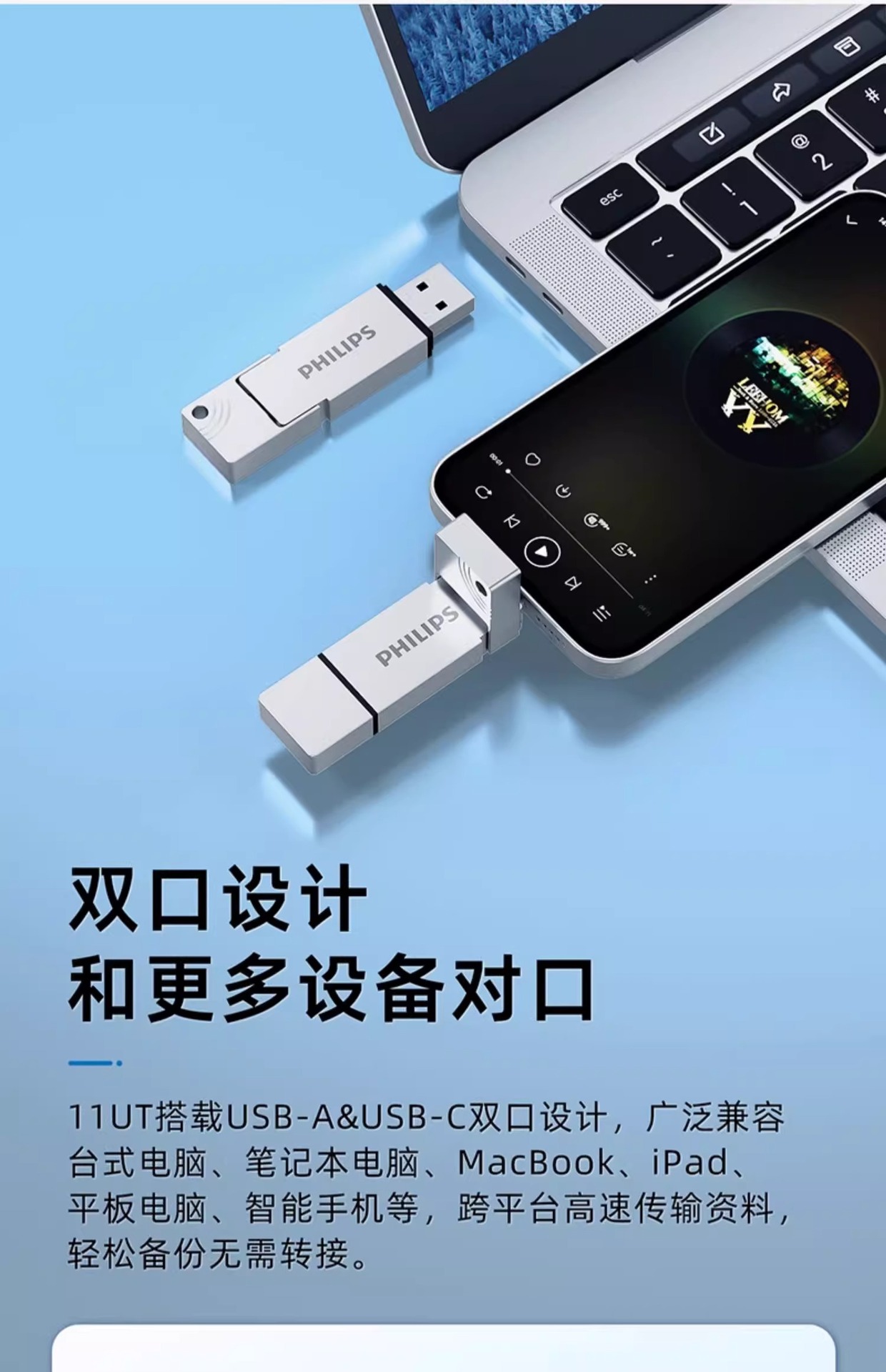 필립스 솔리드 스테이트 U 디스크 듀얼 인터페이스 휴대 전화 컴퓨터 듀얼 사용 USB 고속 대용량 금속 오피스 U 디스크 도매스토어 가기