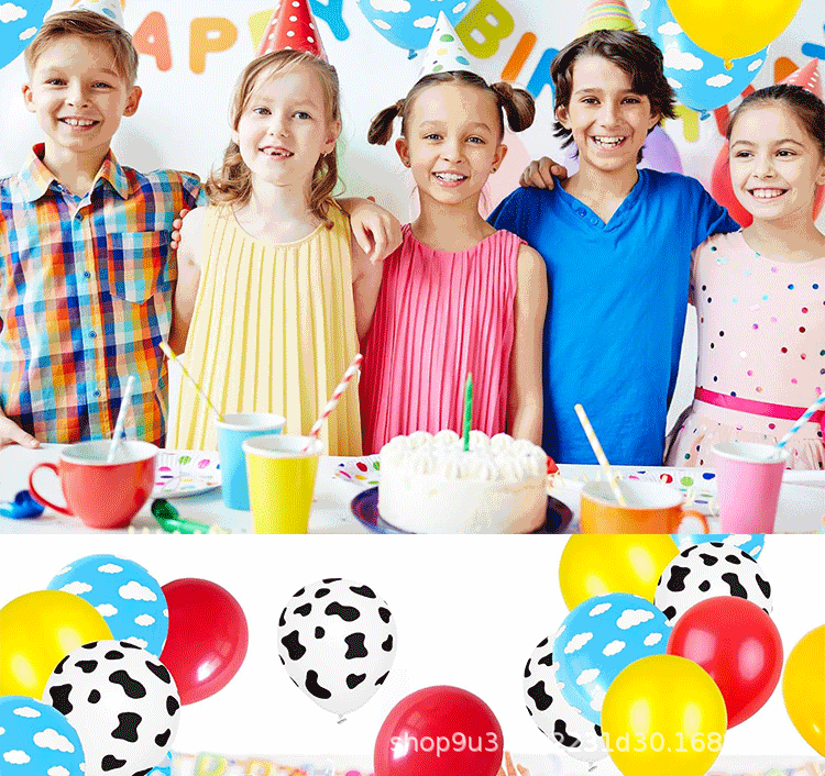 奶牛纹气球套装生日农场主提派对场景布置儿童气球链白云汽球跨境