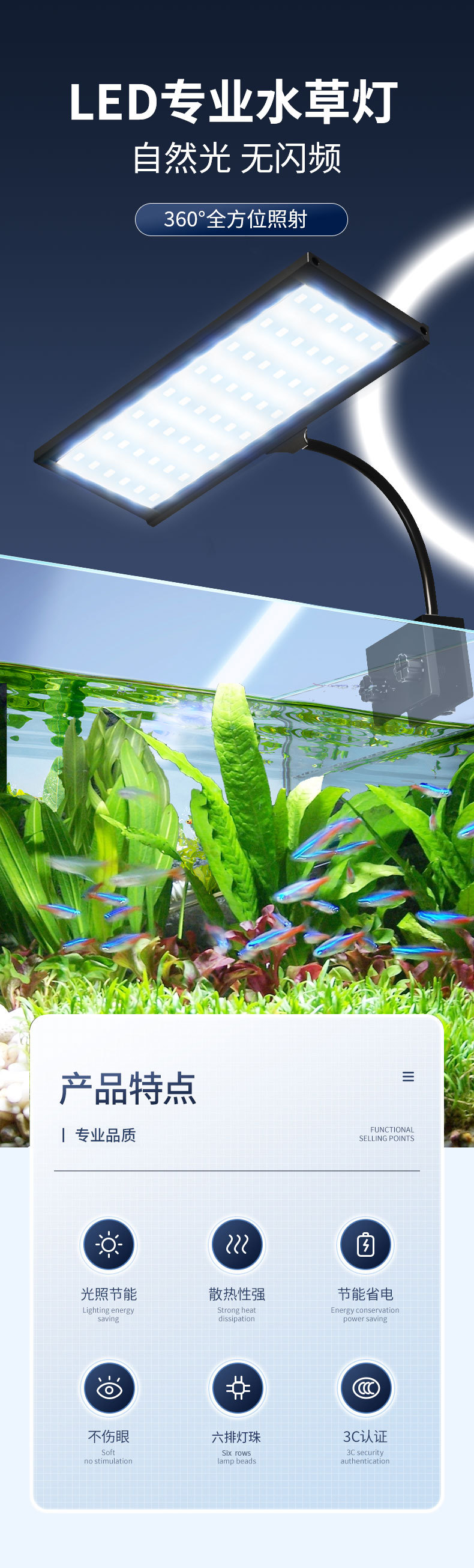 물고기 탱크 램프 방수 led 램프 전체 스펙트럼 수족관 램프 클립 램프 물고기 탱크 조경 램프 잔디 탱크 특수 관상용 물 잔디 램프