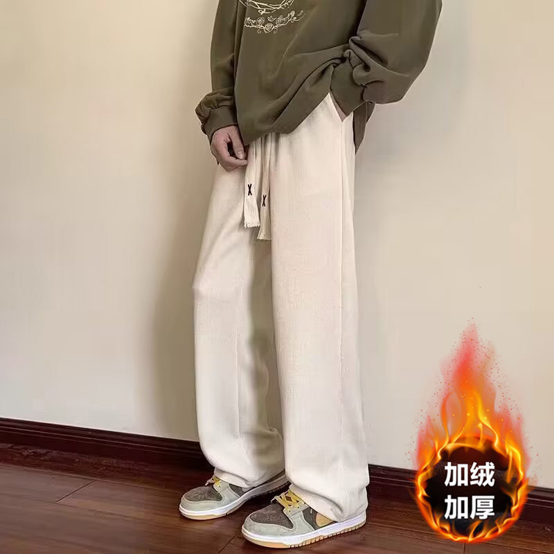 코듀로이 바지 남자 가을과 겨울 트렌디 브랜드 헤비 루즈 바지 남자 넓은 다리 다발 스트레이트 캐주얼 바지스토어 가기