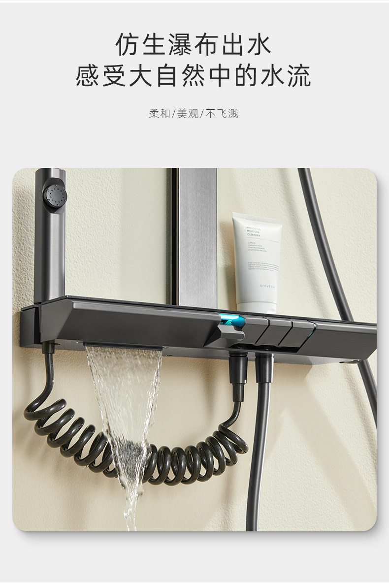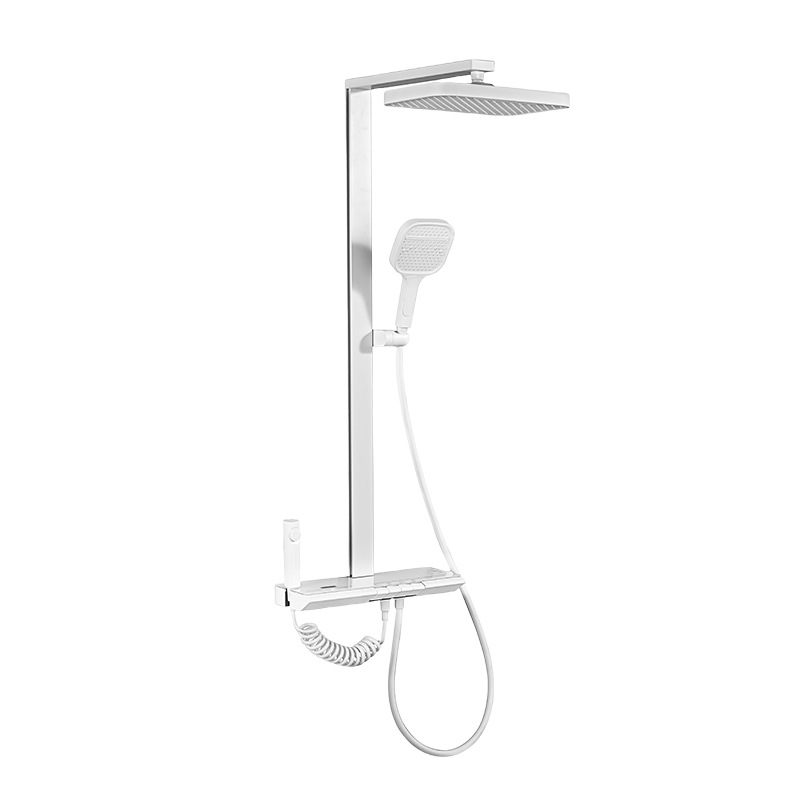 家用奶白色淋浴花洒套装恒温数显增压钢琴键卫浴沐浴花洒腰喷背喷