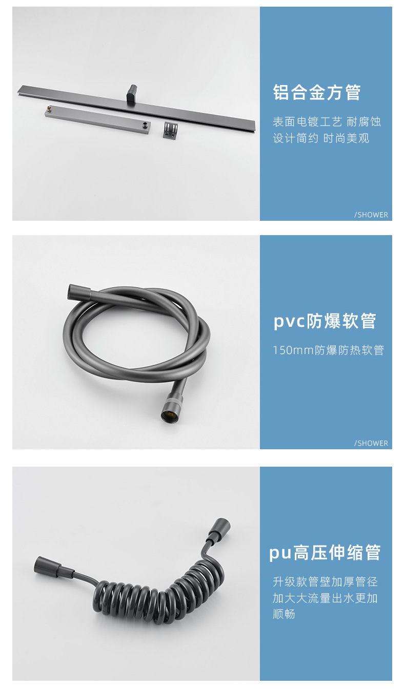 德国枪灰色增压花洒套装浴室全铜冷热水升降沐浴洗澡拉丝金大花洒