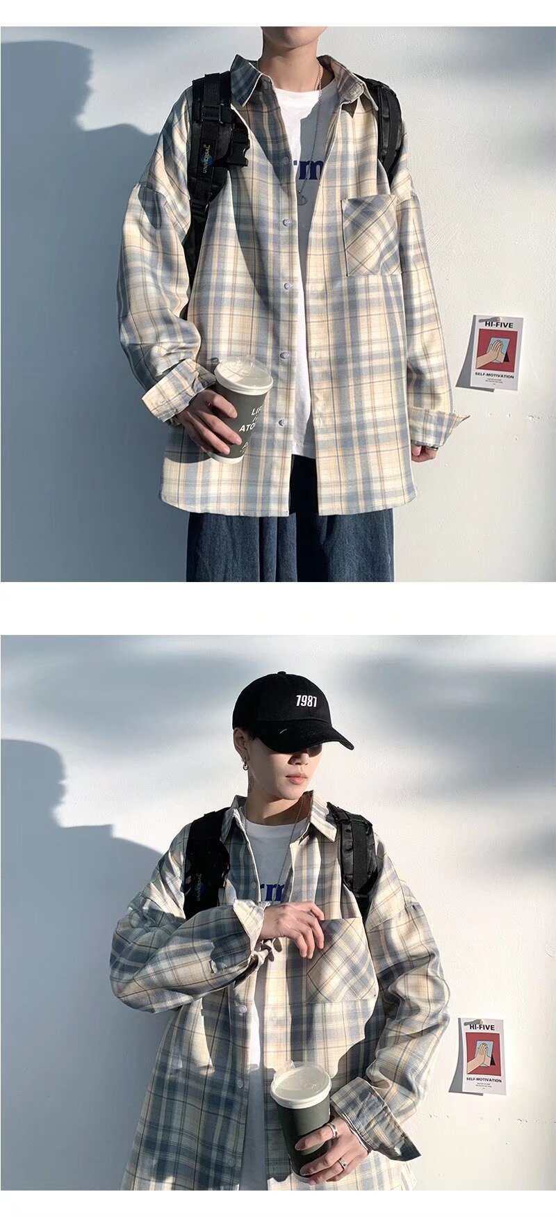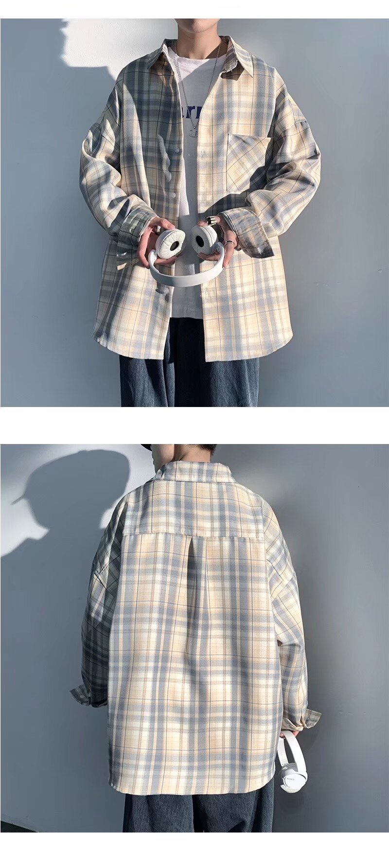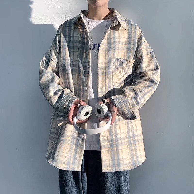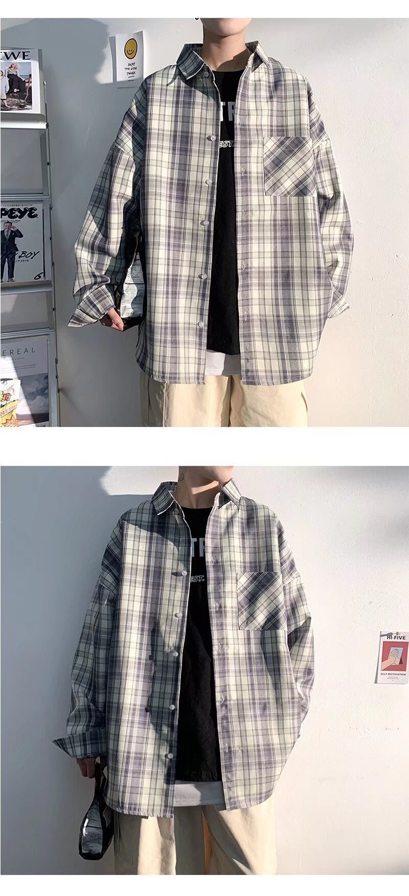 2024 격자 무늬 긴 소매 셔츠 일본 스타일 홍콩 스타일 Ins 느슨한 셔츠 소년 가을 트렌디 한 올 매치 캐주얼 자켓스토어 가기