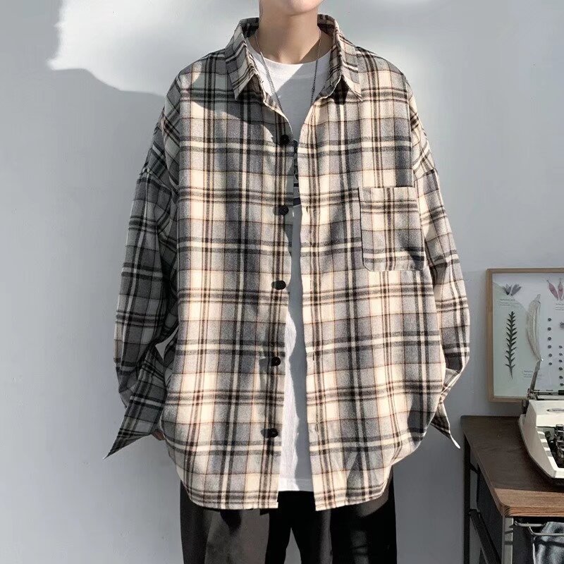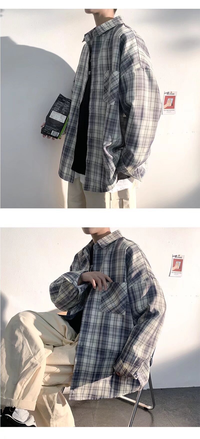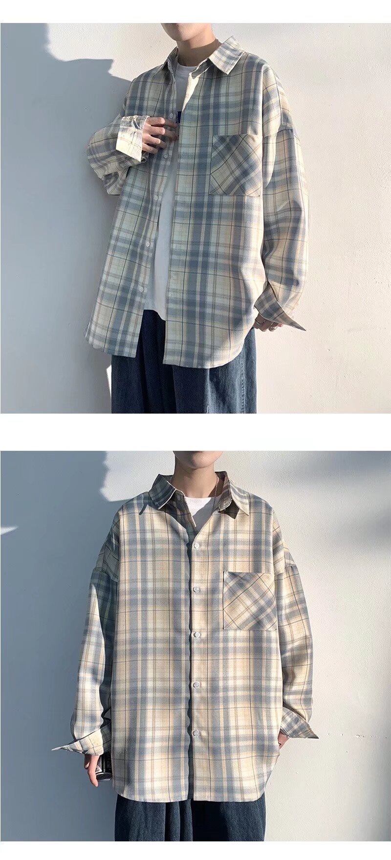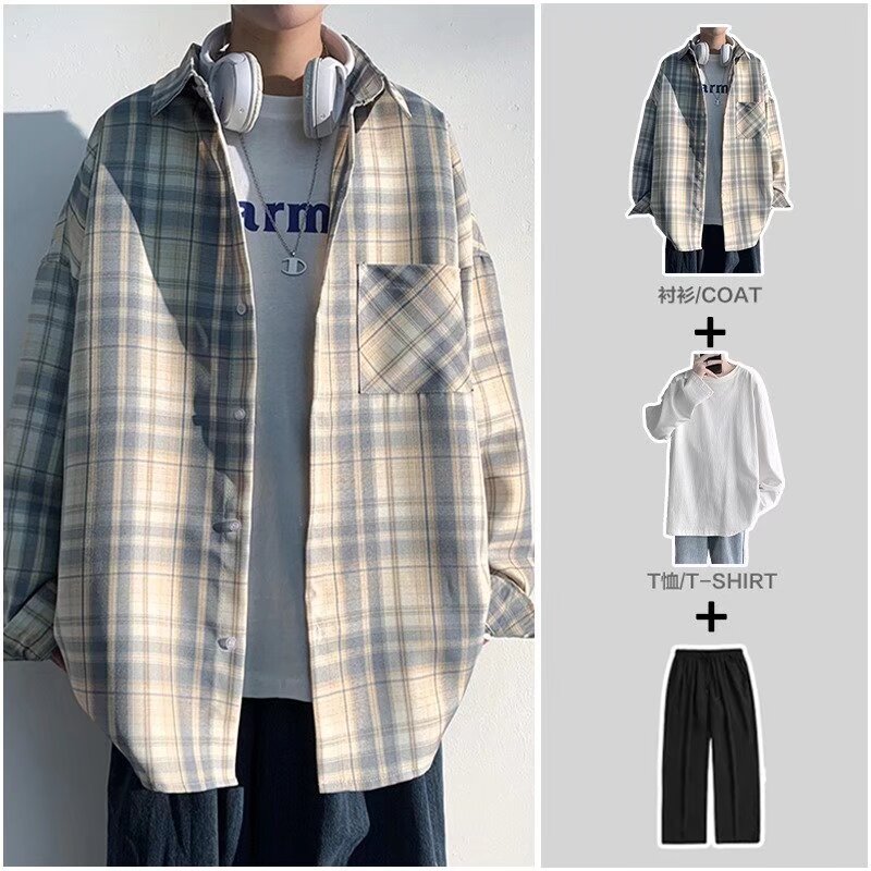 2024 격자 무늬 긴 소매 셔츠 일본 스타일 홍콩 스타일 Ins 느슨한 셔츠 소년 가을 트렌디 한 올 매치 캐주얼 자켓스토어 가기