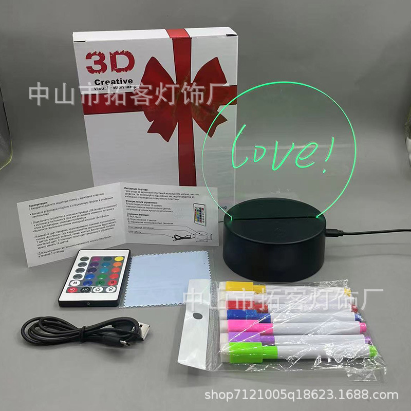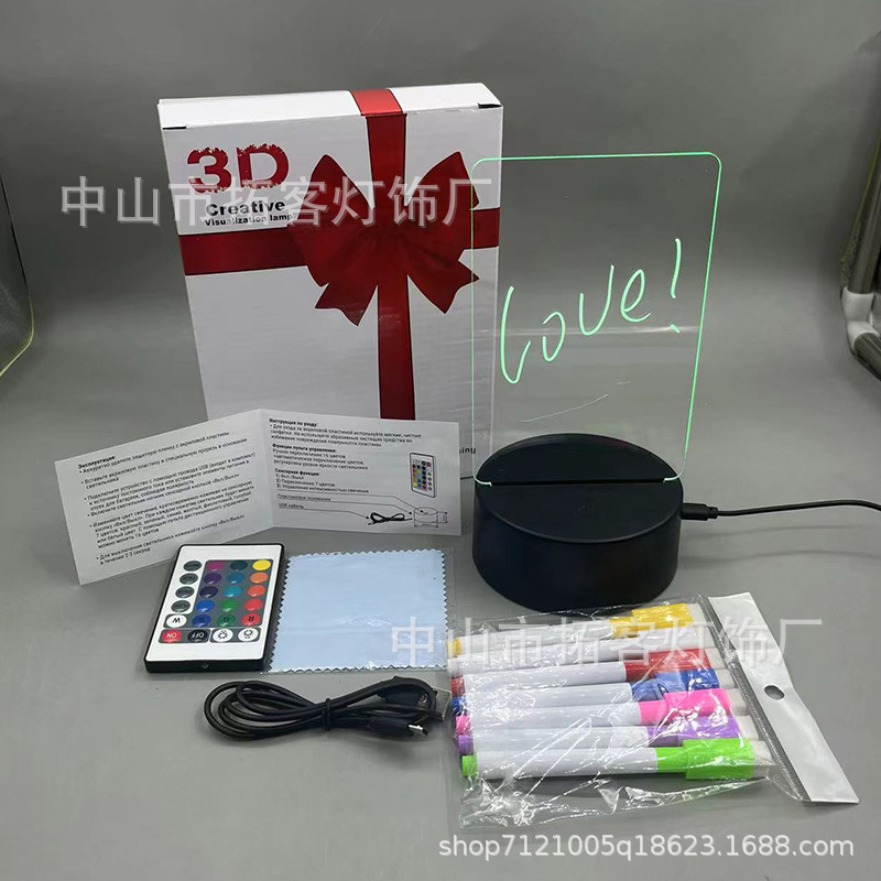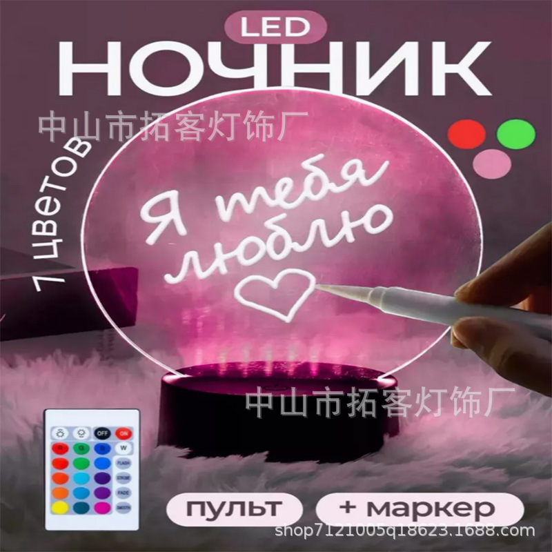 쓰기 밤 빛 16 색 원격 제어 지울 수있는 둥근 빈 화이트 보드 빛나는 diy 국경 컬러 펜 메시지 필기 책상 램프