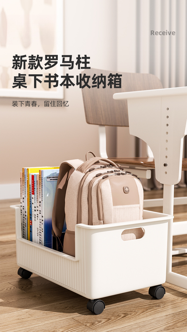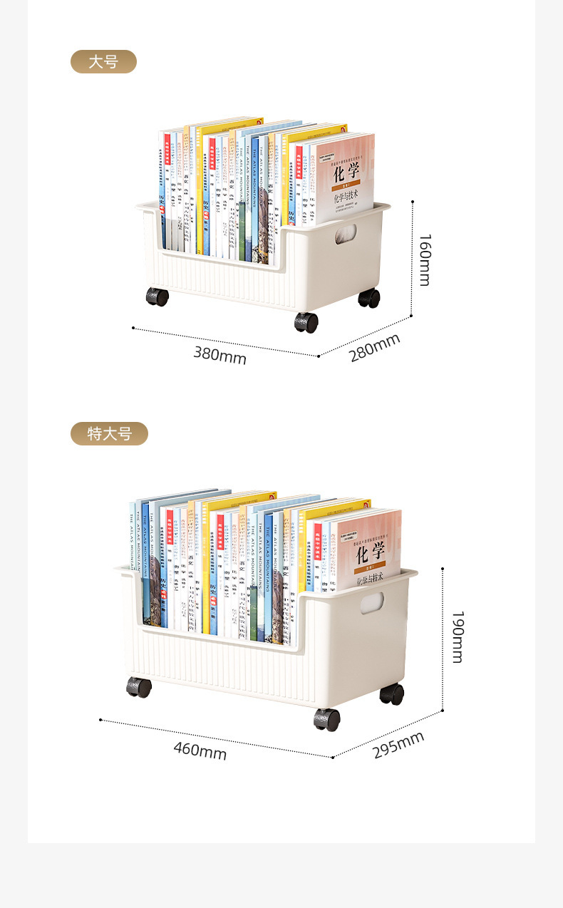 • 책상 밑 책 보관함 - 바퀴가 달린 흰색 대형