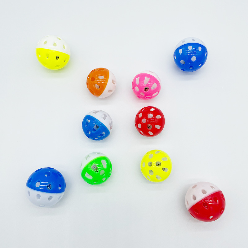 애완 동물 벨 공 도매 고양이 장난감 2 색 플라스틱 벨 볼 그리드 중공 사운드 장난감 훈련 벨 볼