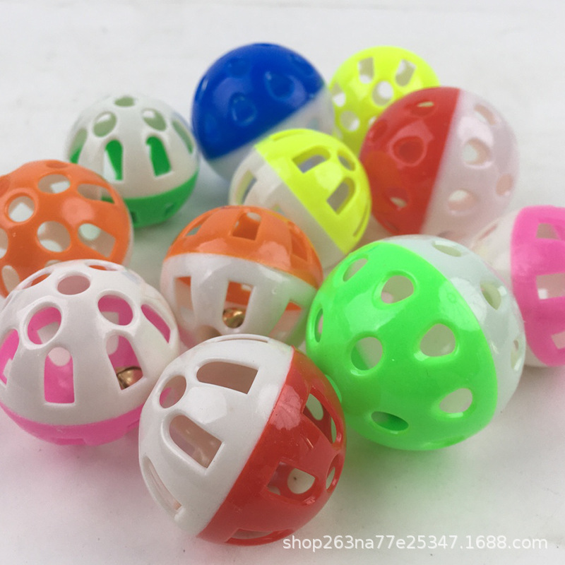 애완 동물 벨 공 도매 고양이 장난감 2 색 플라스틱 벨 볼 그리드 중공 사운드 장난감 훈련 벨 볼스토어 가기