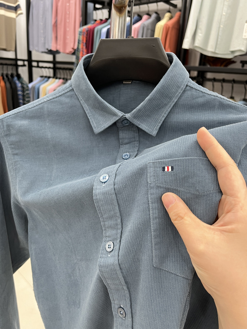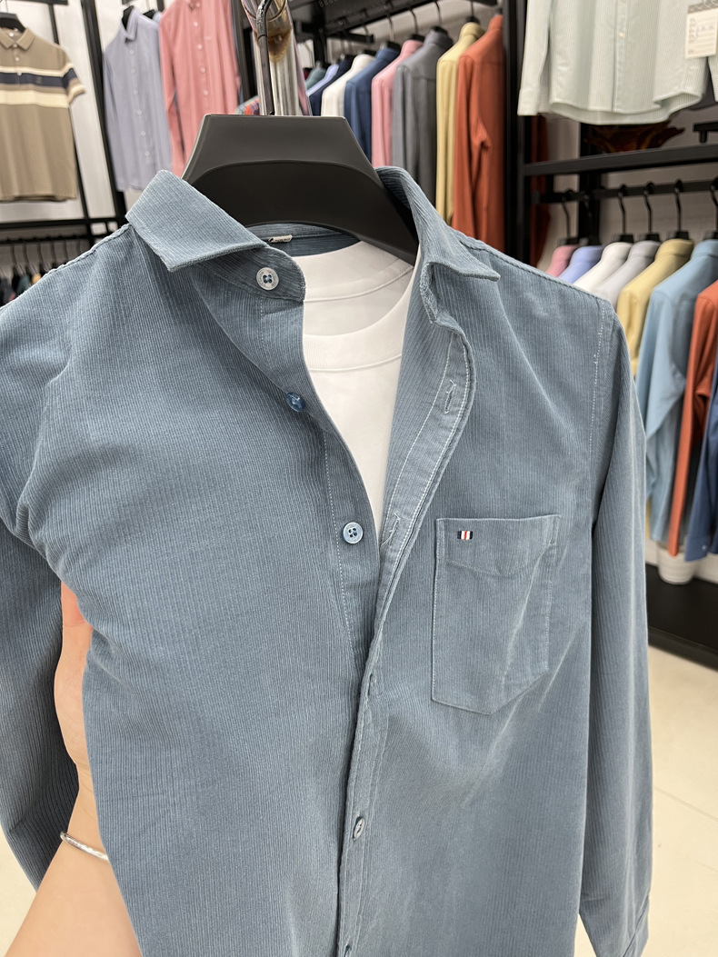 카운터 같은 스타일 100 코튼 코듀로이 긴 소매 셔츠 남자의 진짜 포켓 코듀로이 캐주얼 루즈 셔츠스토어 가기