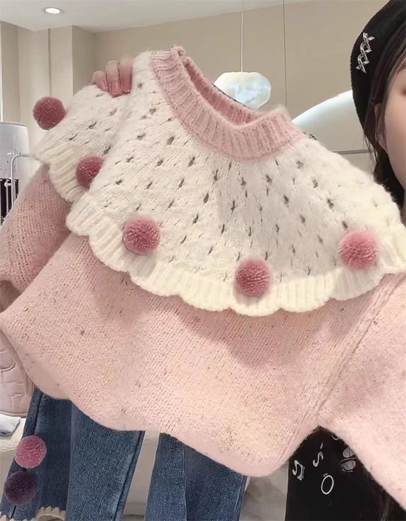 소녀 스웨터 두꺼운 가을과 겨울베이스 셔츠 긴 소매 봄과 가을 서양 스타일 달콤한 외부 착용 유행 라운드 넥 울 옷