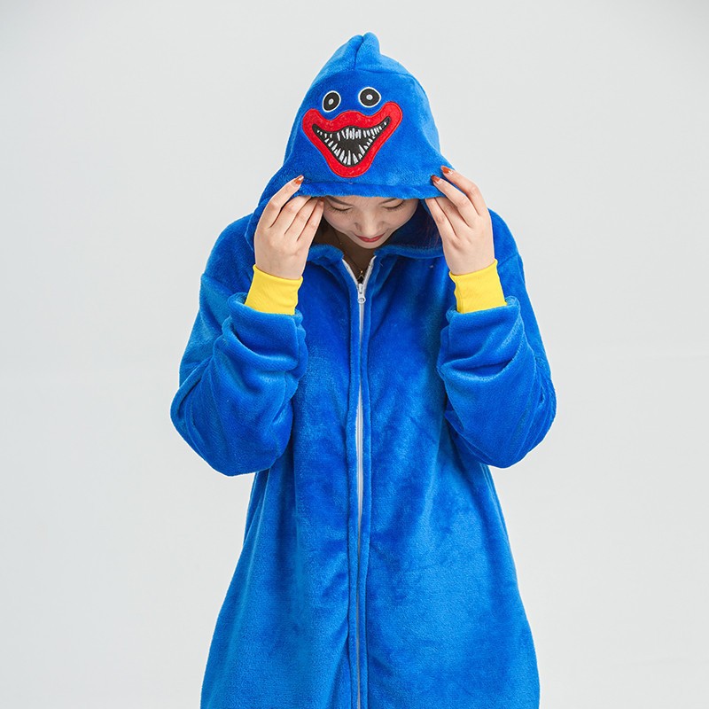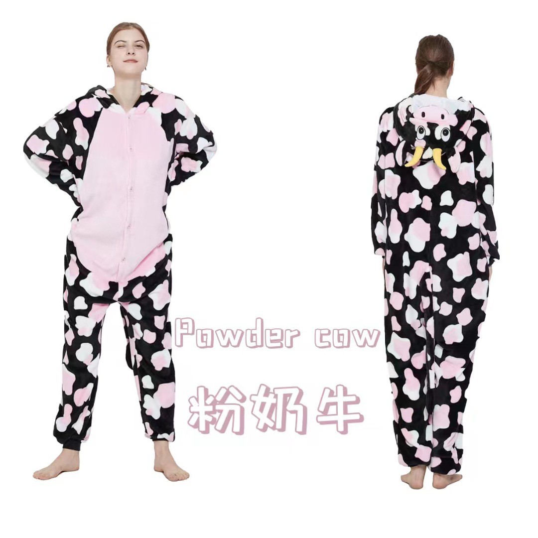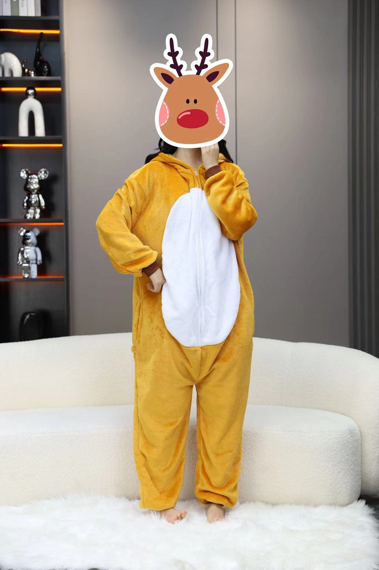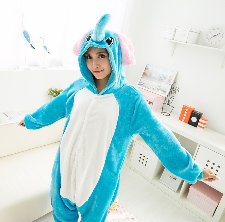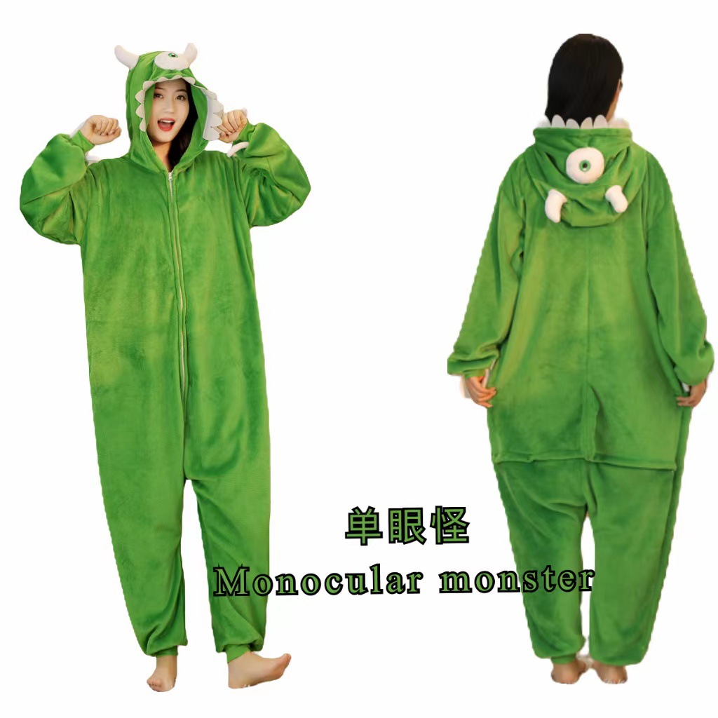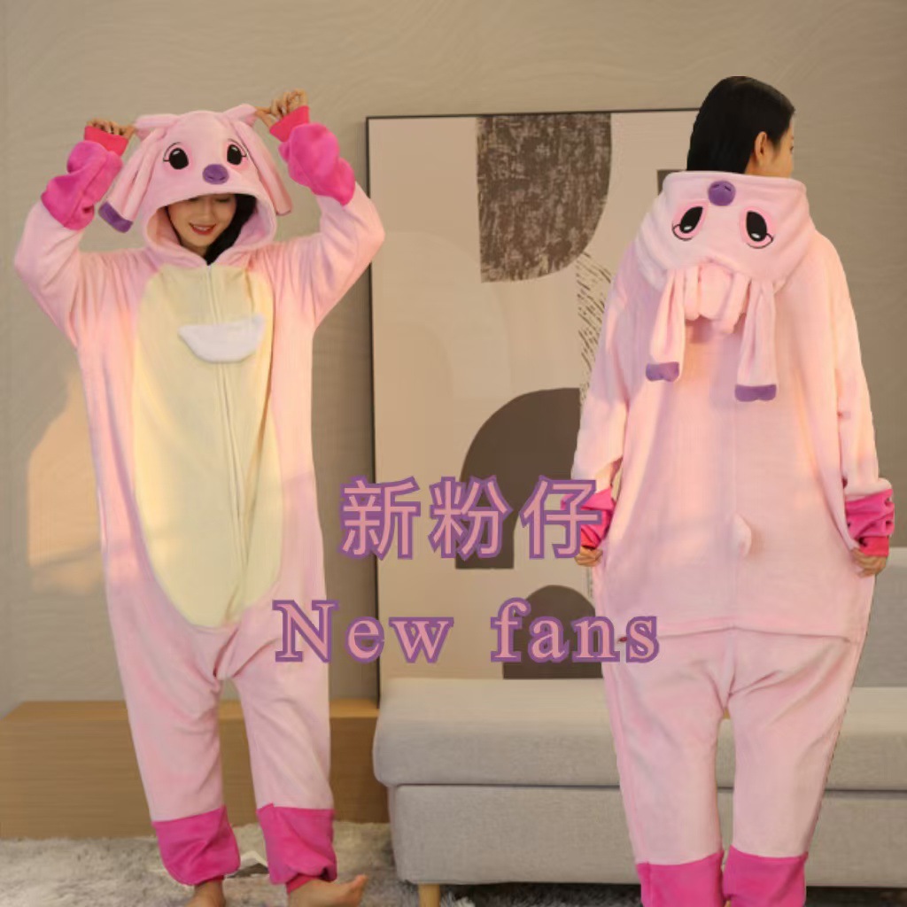 블루 스티치 플란넬 만화 동물 앞면 지퍼 잠옷 홈웨어 커플용 가정용 캐주얼 플러스 벨벳스토어 가기