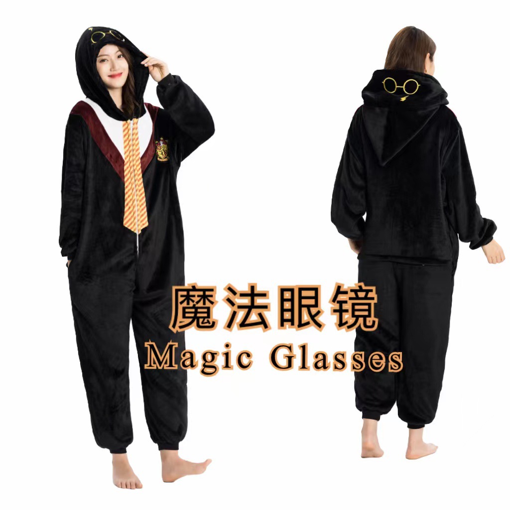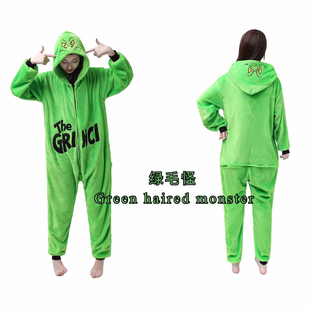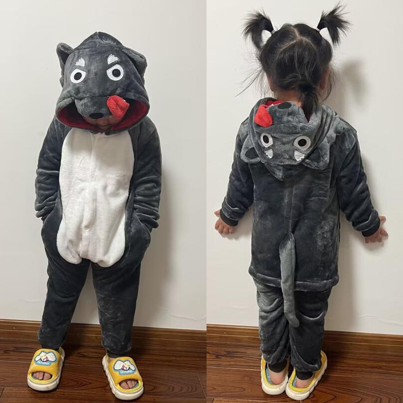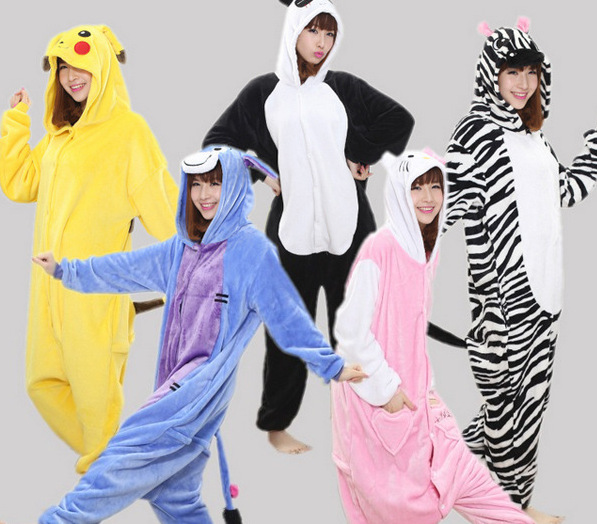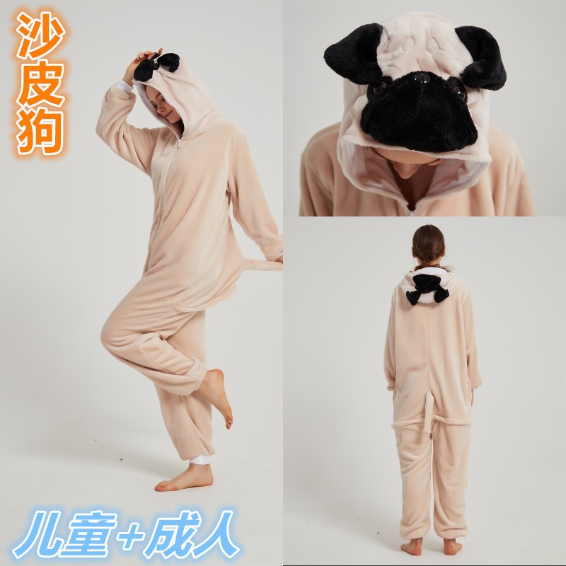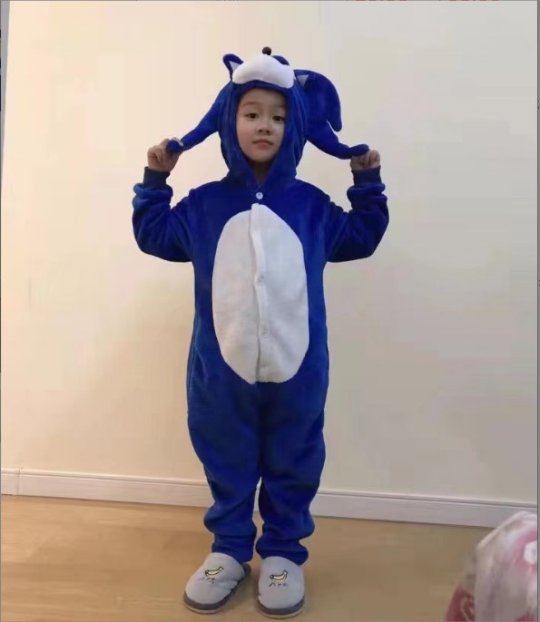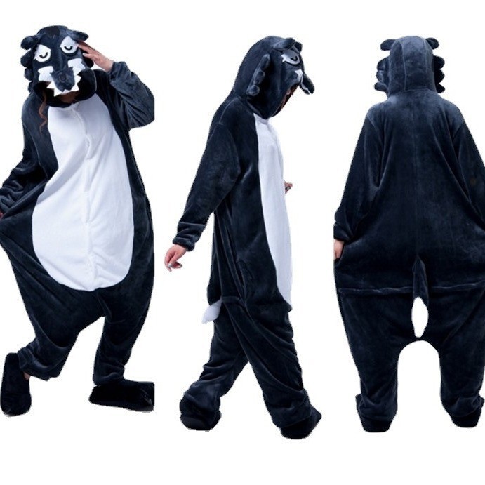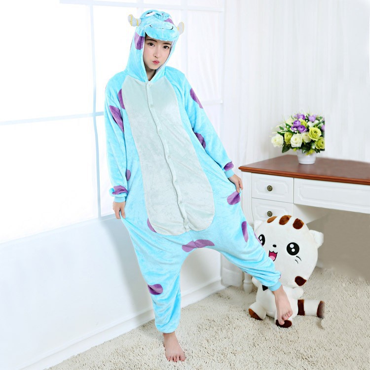 블루 스티치 플란넬 만화 동물 앞면 지퍼 잠옷 홈웨어 커플용 가정용 캐주얼 플러스 벨벳스토어 가기