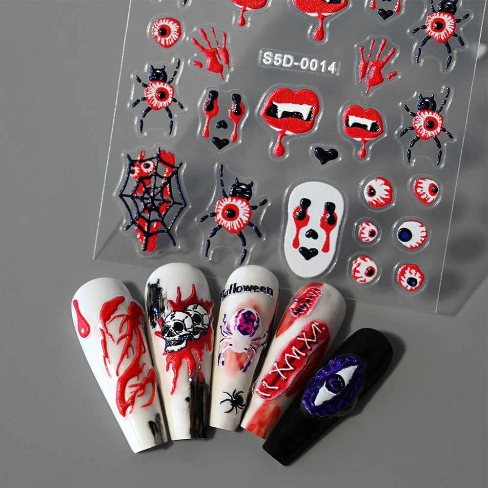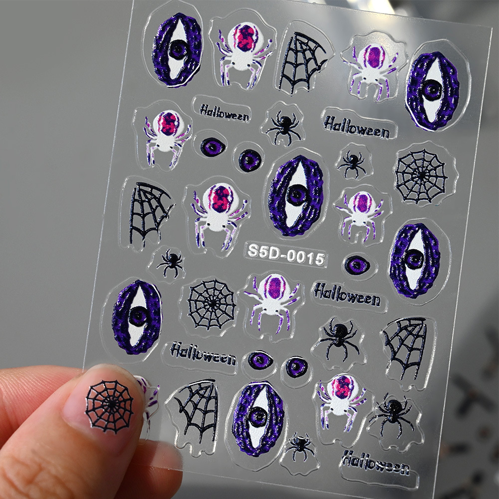 국경 핫 할로윈 네일 아트 스티커 5D 구호 두개골 호박 재미 네일 스티커 스테레오 릴리프스토어 가기