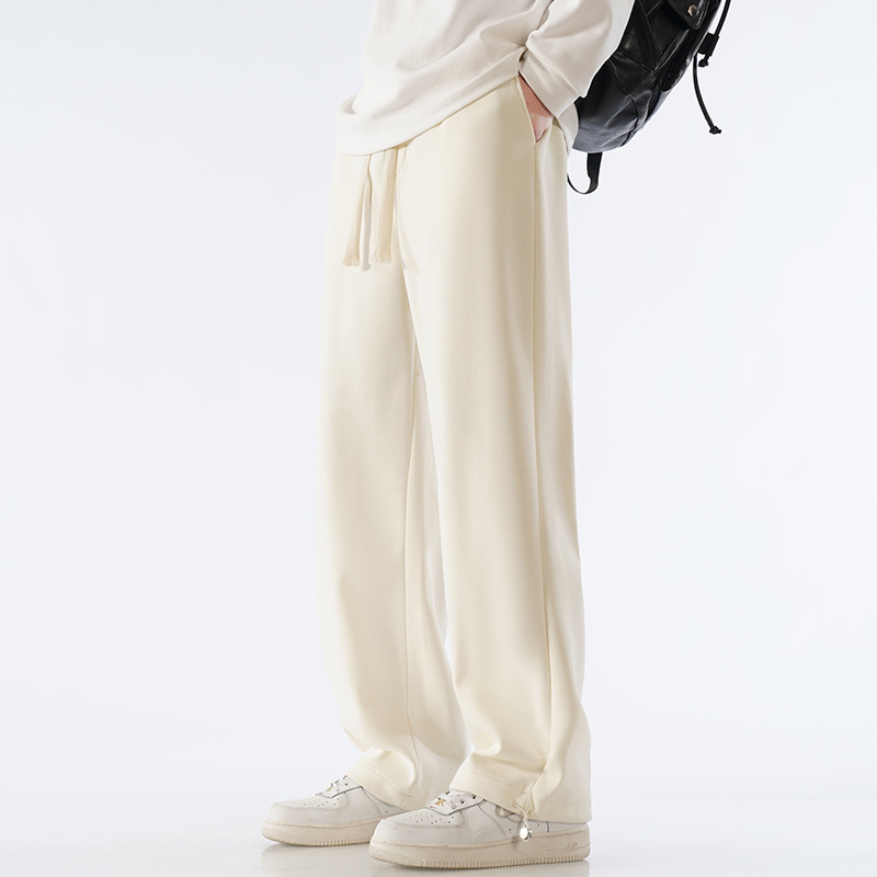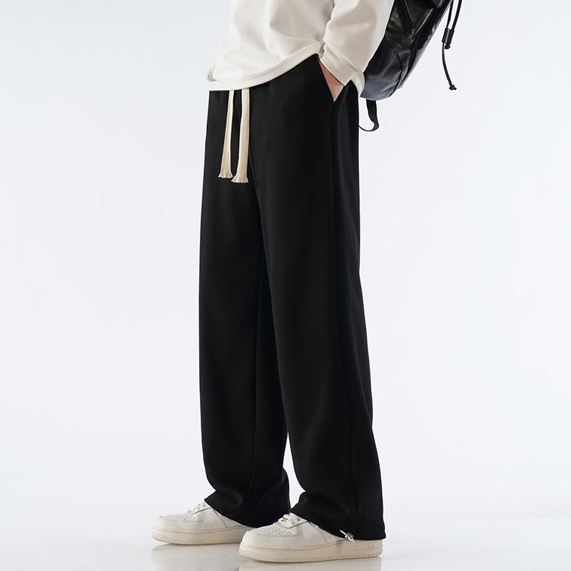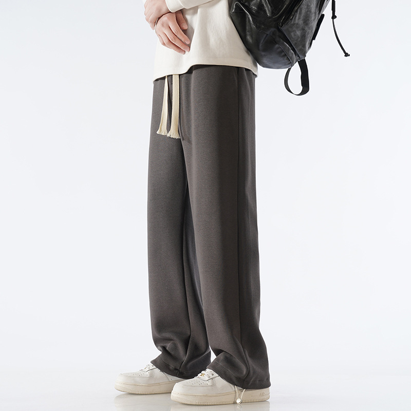 남성용 면 스포츠 바지 가을 겨울용 플리스 안감 트렌디 브랜드 루즈핏 스트레이트 와이드 팬츠 발목 조임끈 캐주얼 롱 팬츠스토어 가기