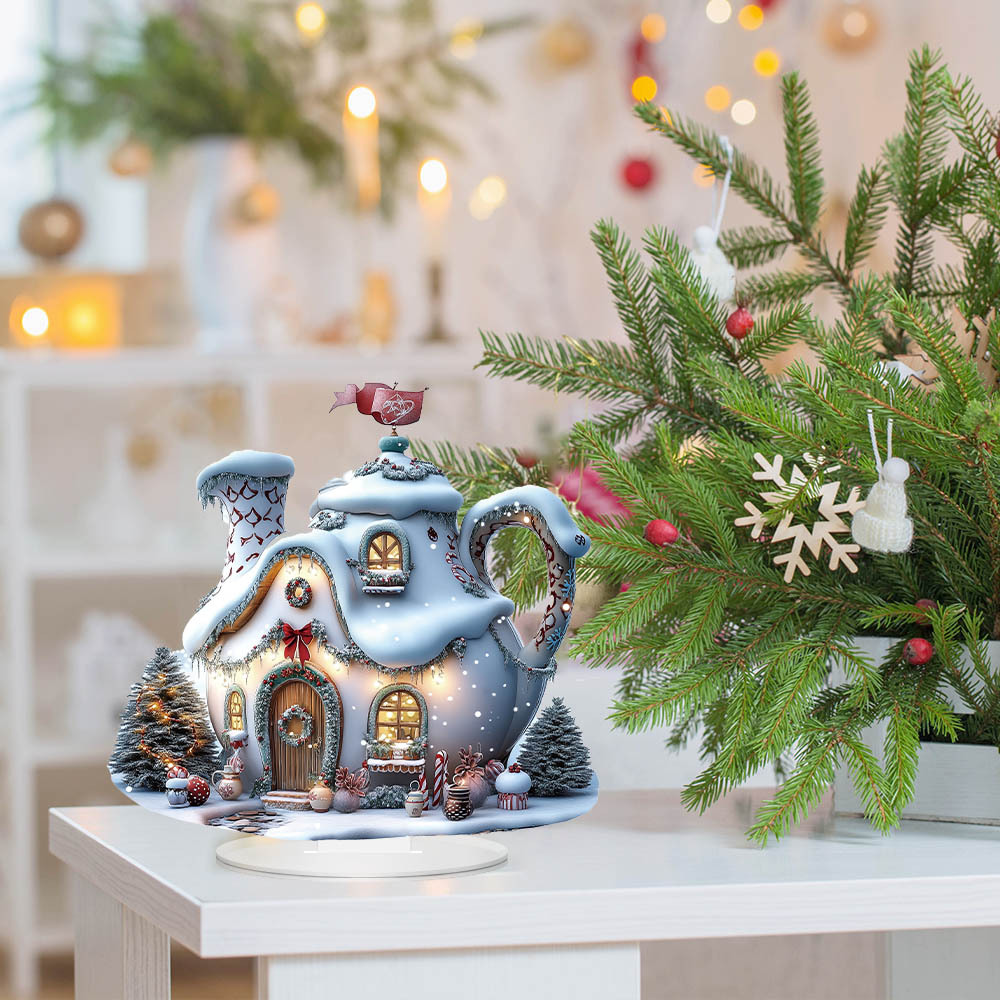 국경 간 아트 주전자 스노우 캐빈 아크릴 사인 영감을주는 데스크탑 장식 홈 장식 선물스토어 가기