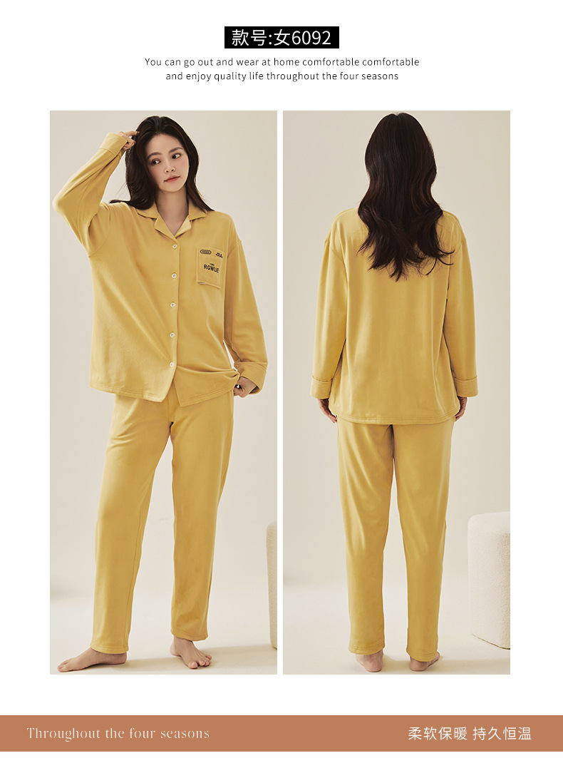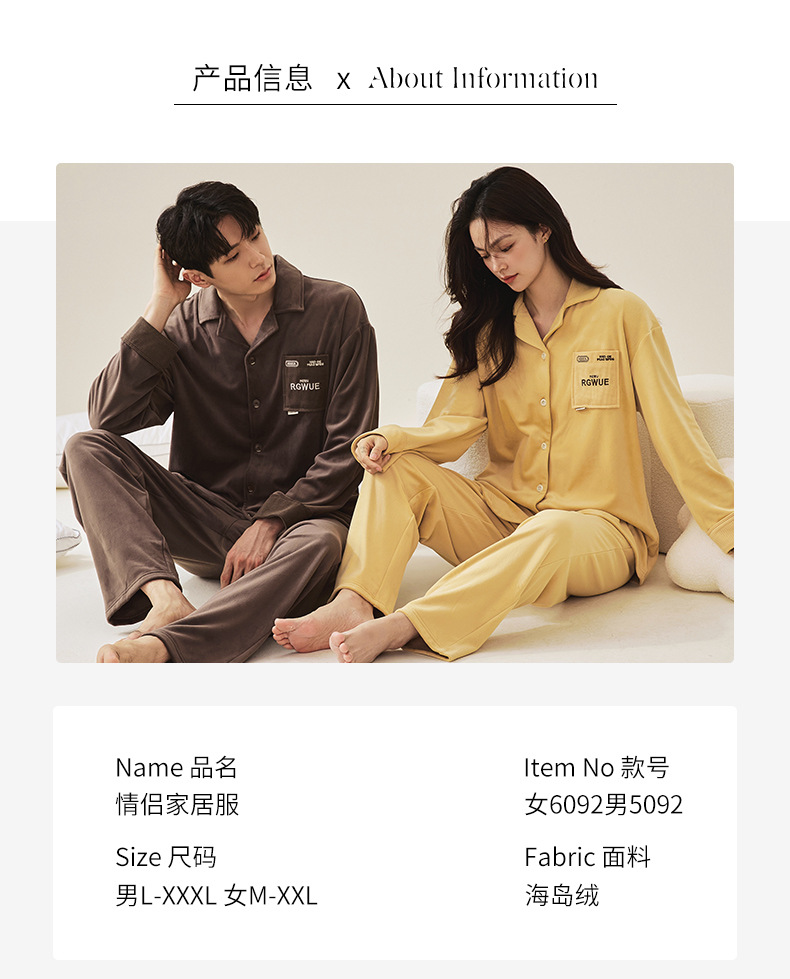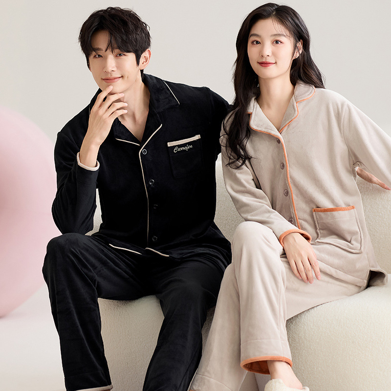 350g 완전 멸종 섬 벨벳 커플 잠옷 패딩 벨벳 세트 간단한 가을과 겨울 남성과 여성의 집 옷스토어 가기