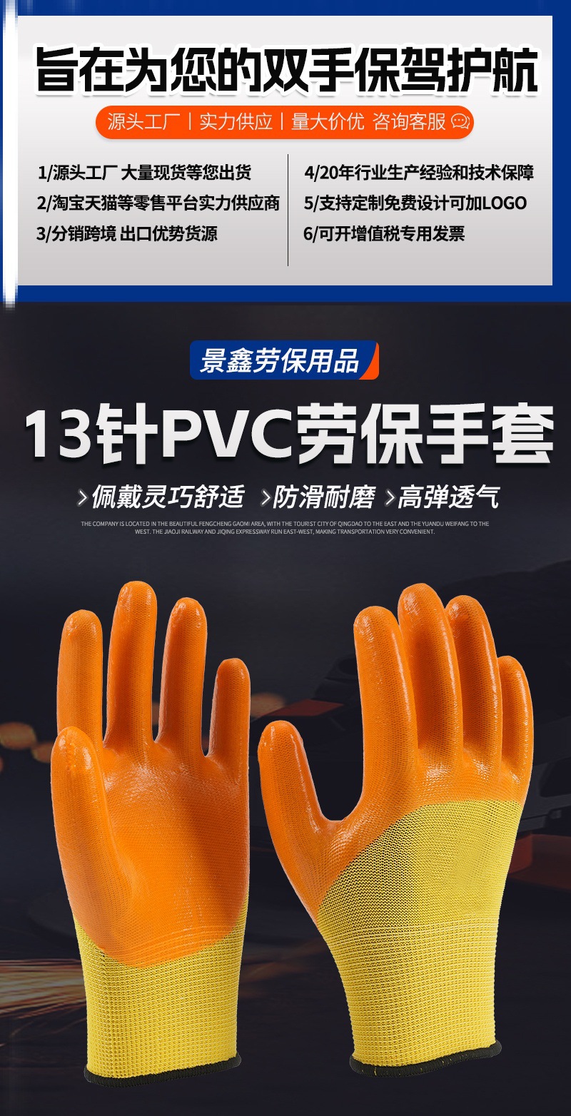 수입 된 PVC 반 교수형 함침 방수, 내유성 및 내마모성 작업 장갑은 국경을 넘어 제조업체가 특별히 공급합니다.스토어 가기