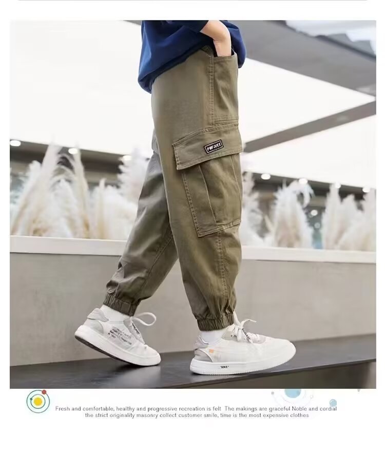 2024 년 뉴 보이즈 팬츠 봄과 가을 올 매치 웨스턴 스타일 크록수트 팬츠 빅 보이 루즈 한 봄 가을 바지 쿨스토어 가기