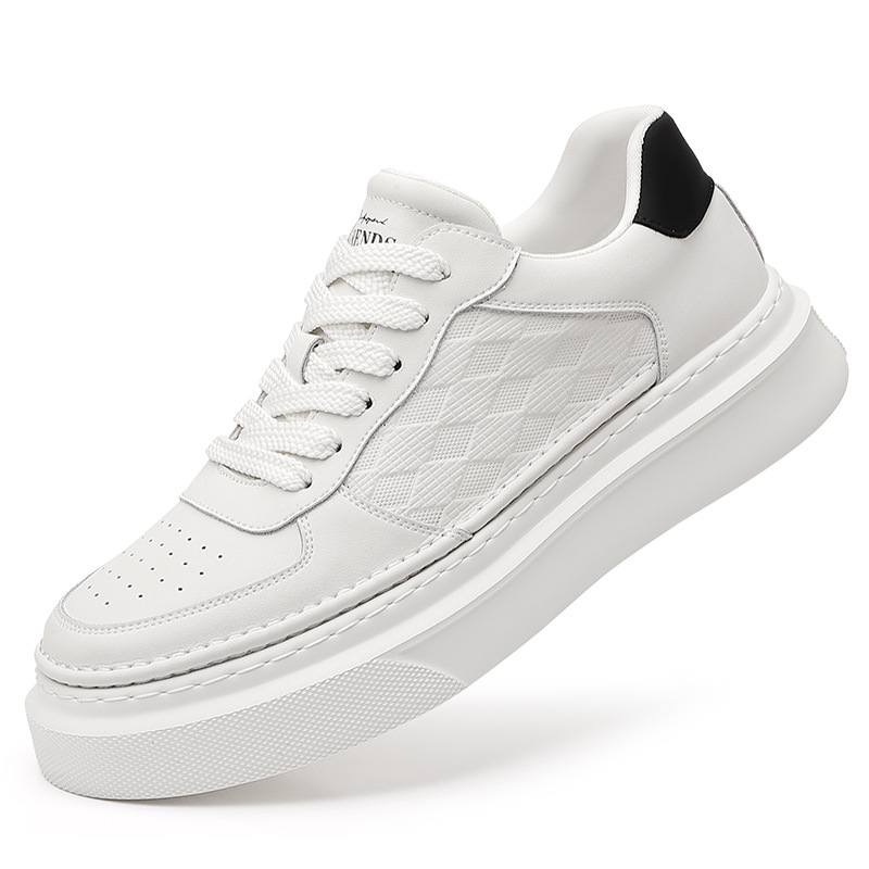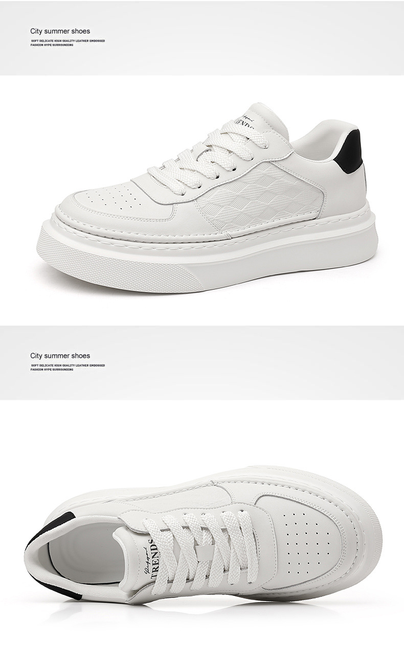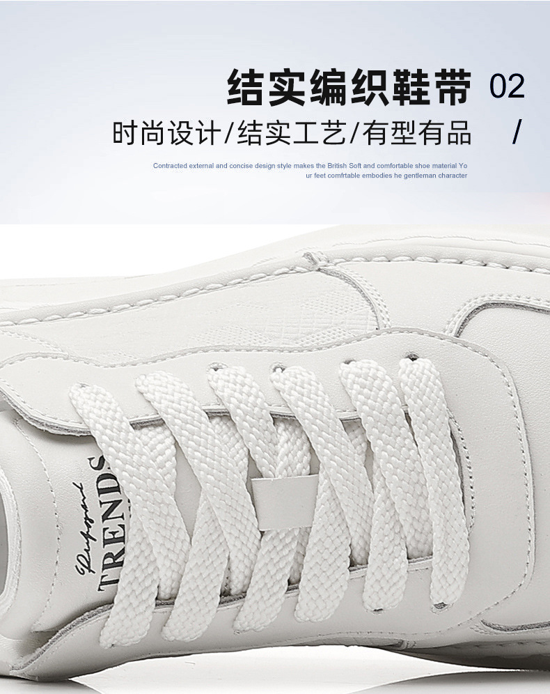 정품 가죽 남성용 캐주얼 화이트 슈즈 2024 가을 새로운 두꺼운 슬래브 슈즈 올 매치 트렌디 남성 학생 운동화