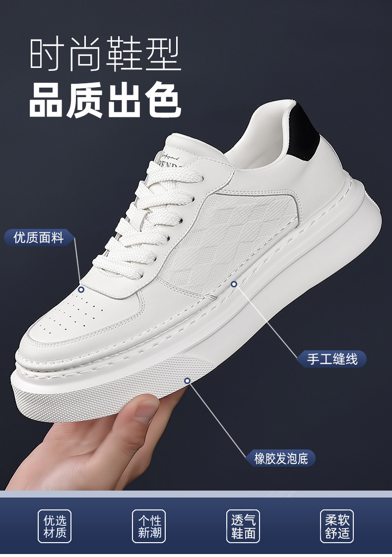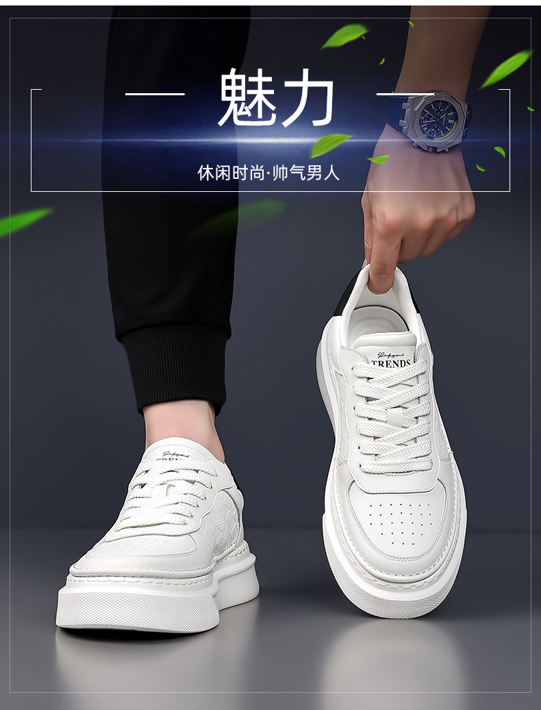 정품 가죽 남성용 캐주얼 화이트 슈즈 2024 가을 새로운 두꺼운 슬래브 슈즈 올 매치 트렌디 남성 학생 운동화스토어 가기