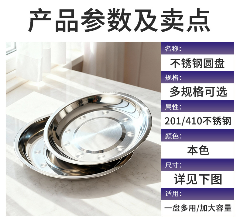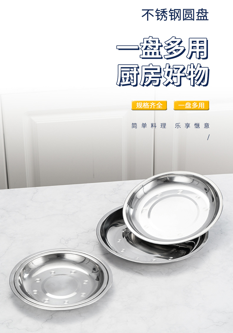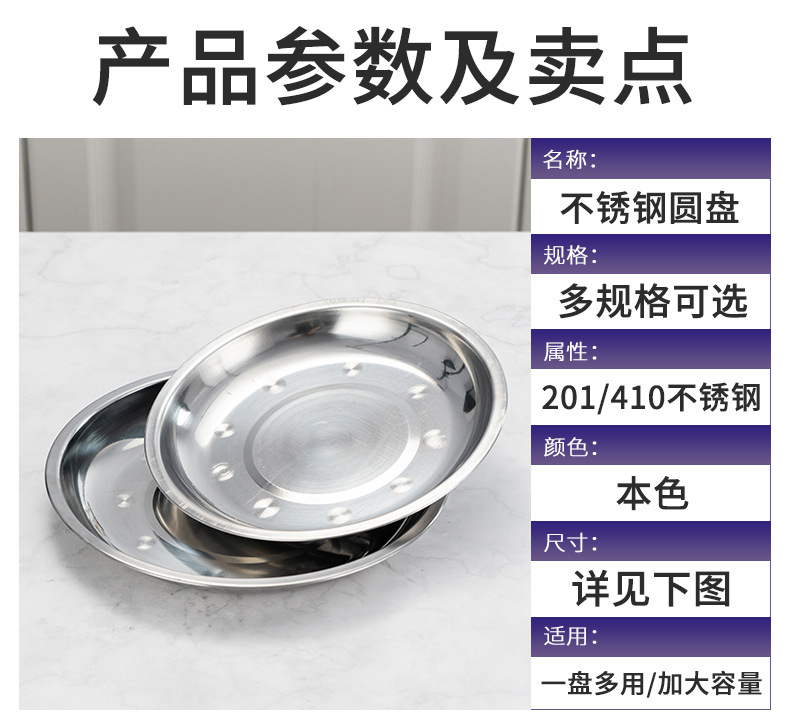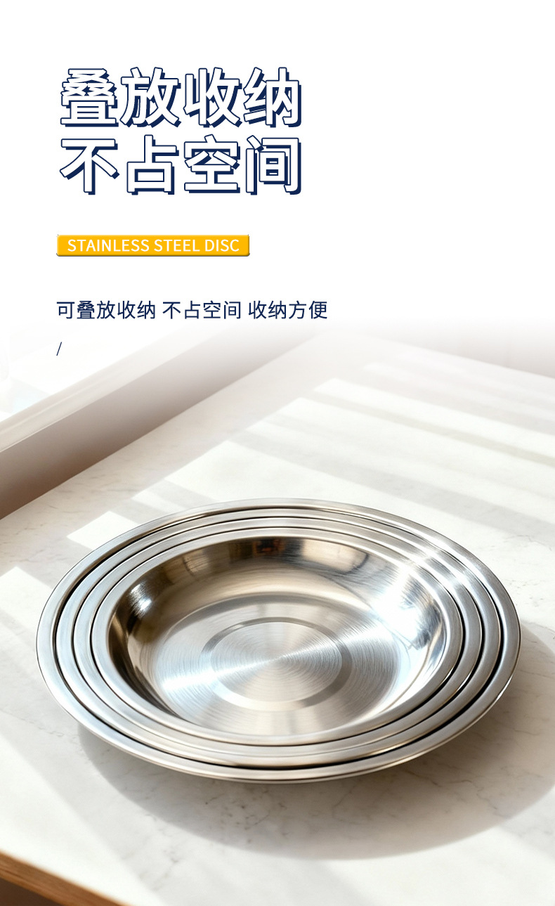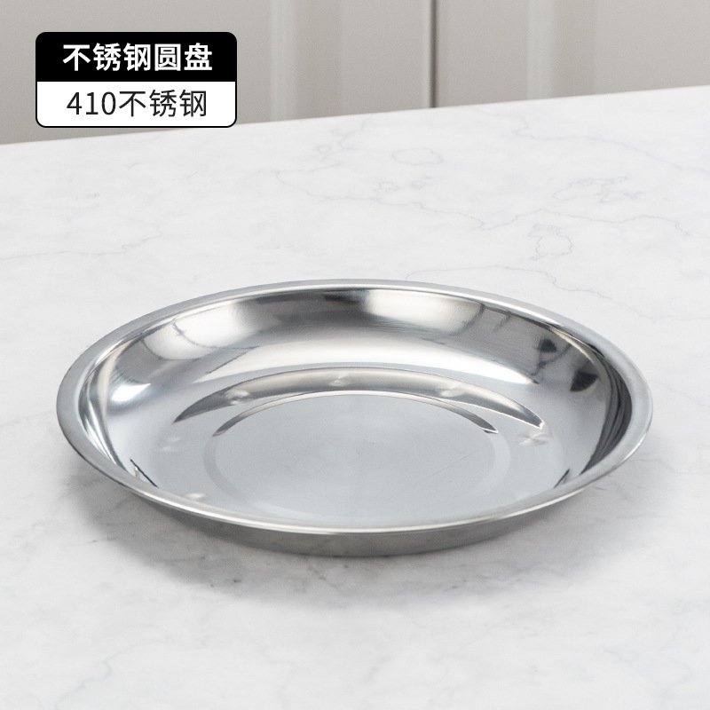 스테인레스 스틸 라운드 접시 접시 트레이 스테인레스 스틸 접시 가정용 바베큐 접시 준비 접시 디너 접시 상업 접시 도매스토어 가기