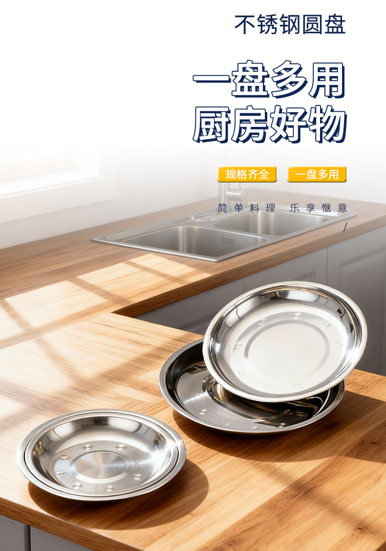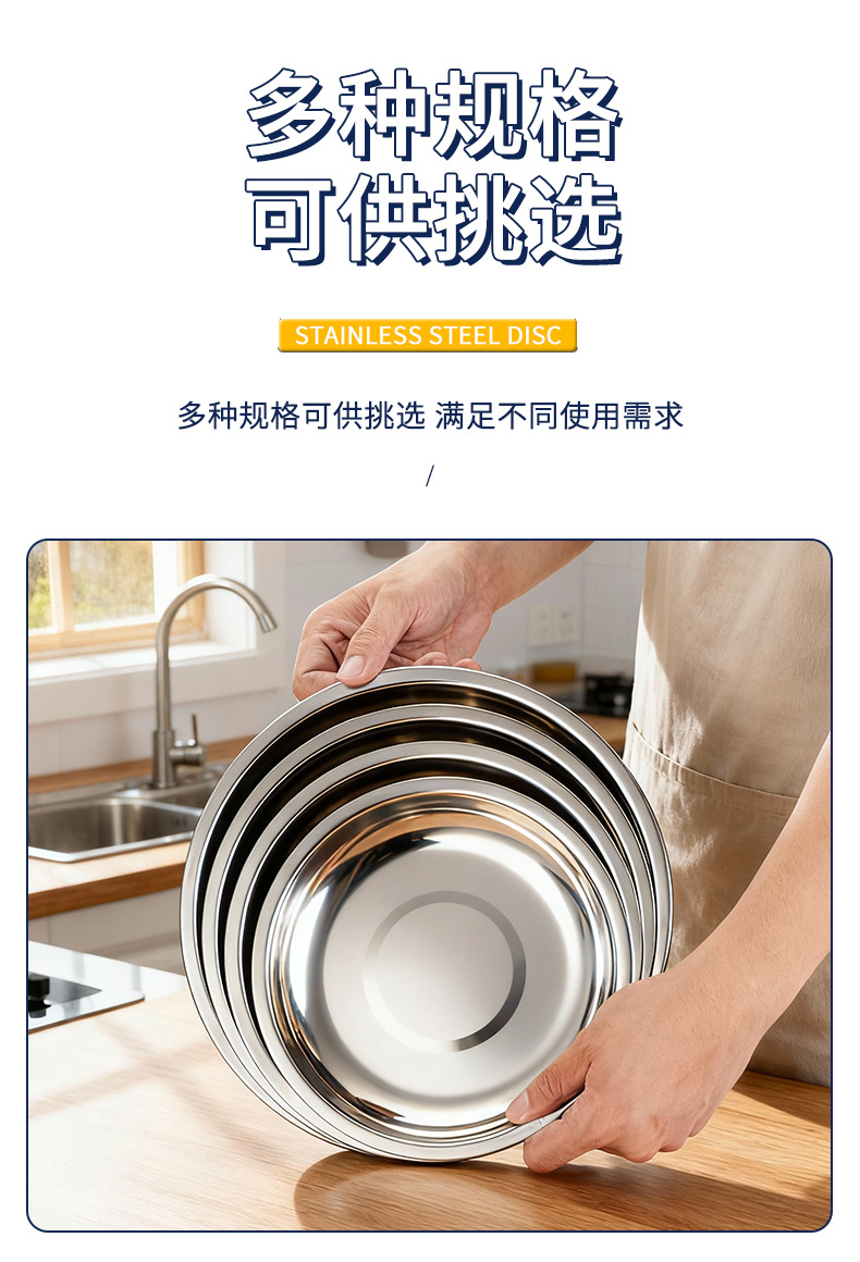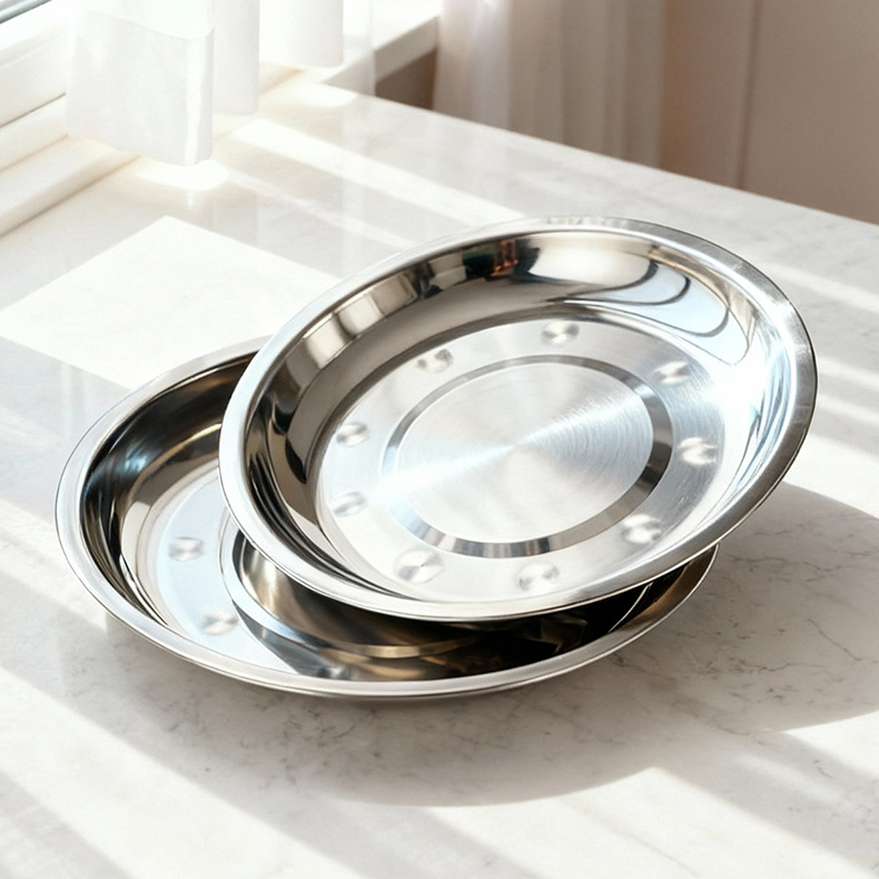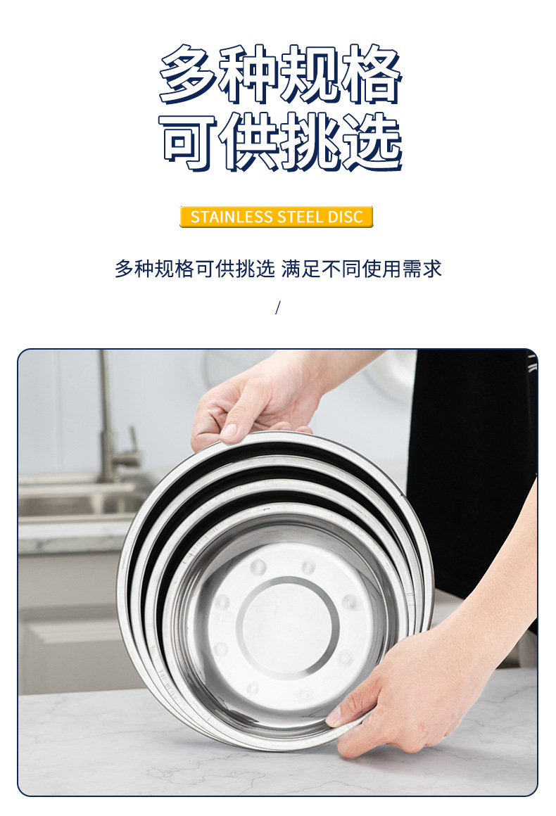 스테인레스 스틸 라운드 접시 접시 트레이 스테인레스 스틸 접시 가정용 바베큐 접시 준비 접시 디너 접시 상업 접시 도매스토어 가기