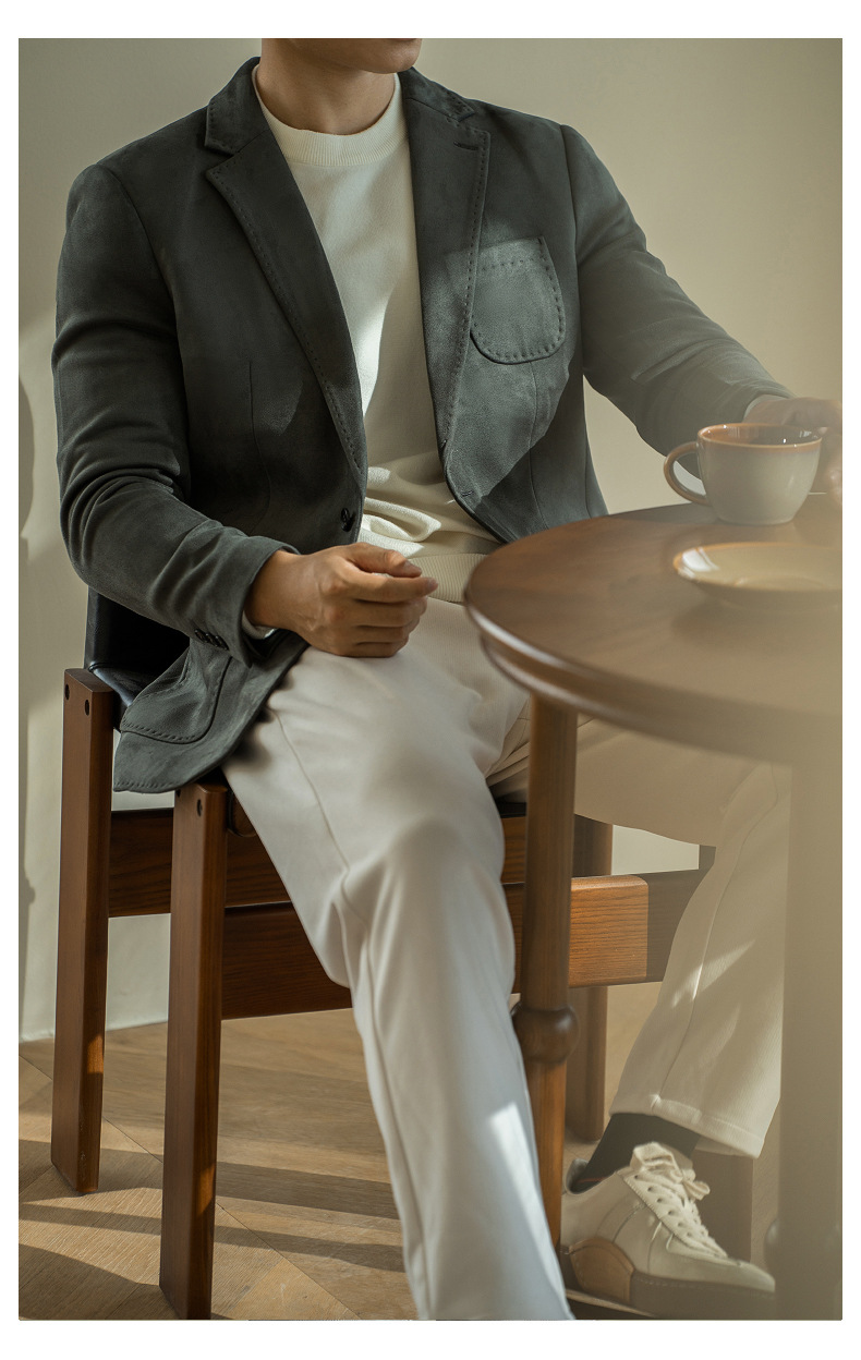 [파이오니어 시리즈] 남성용 사슴가죽 기모 라이트 럭셔리 정장 재킷 2025 봄 긴팔 비즈니스 정장스토어 가기