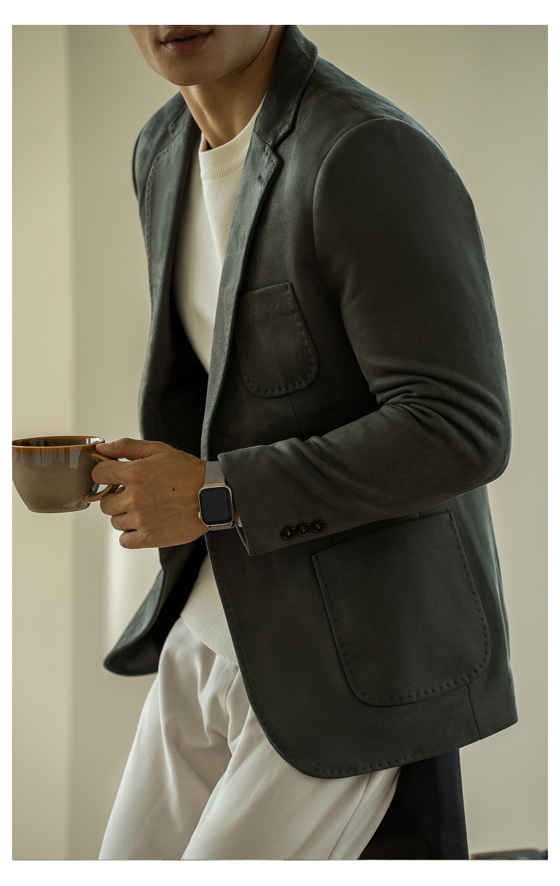 [파이오니어 시리즈] 남성용 사슴가죽 기모 라이트 럭셔리 정장 재킷 2025 봄 긴팔 비즈니스 정장