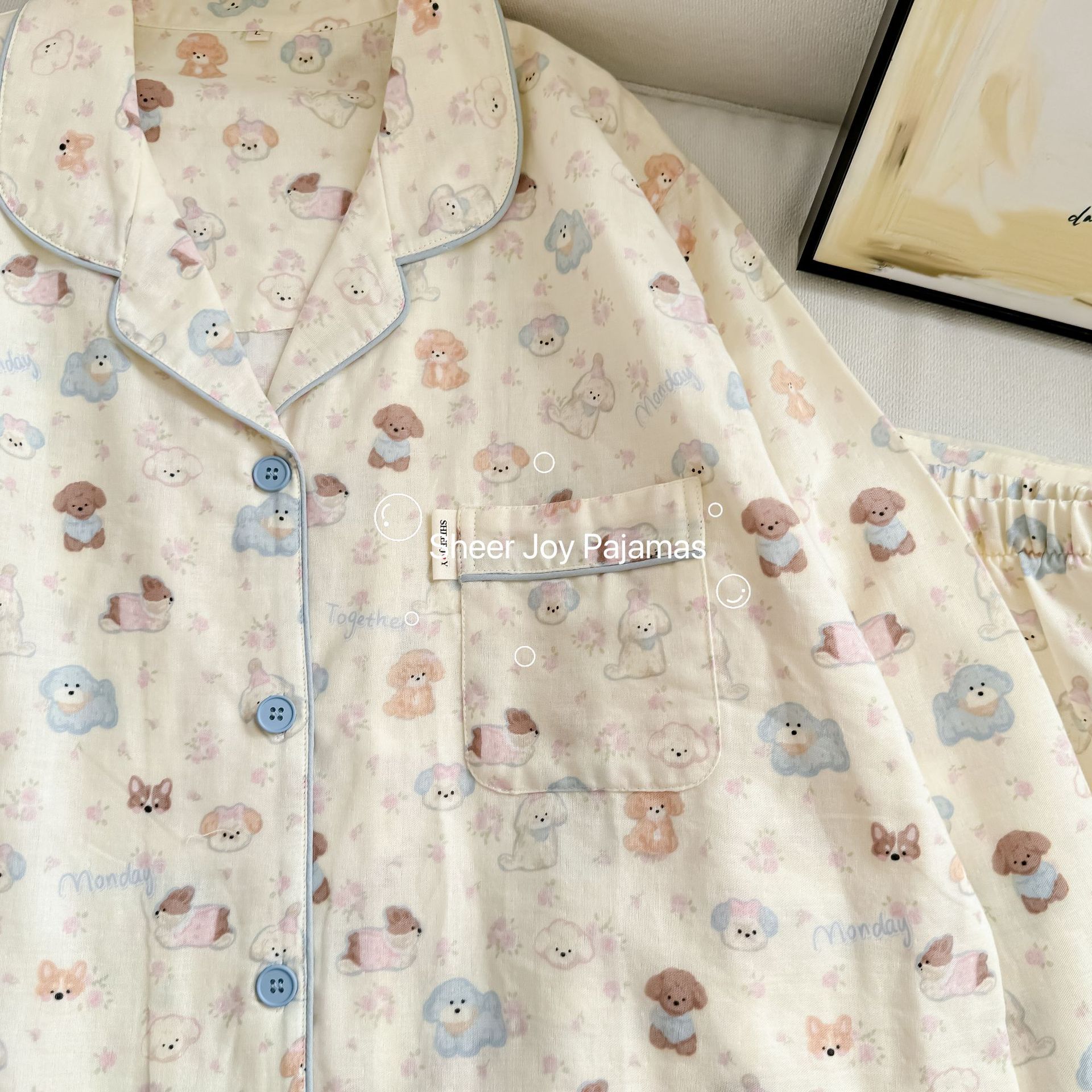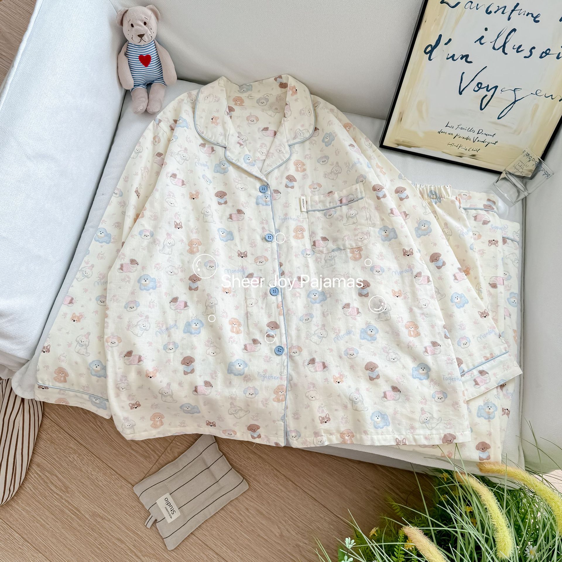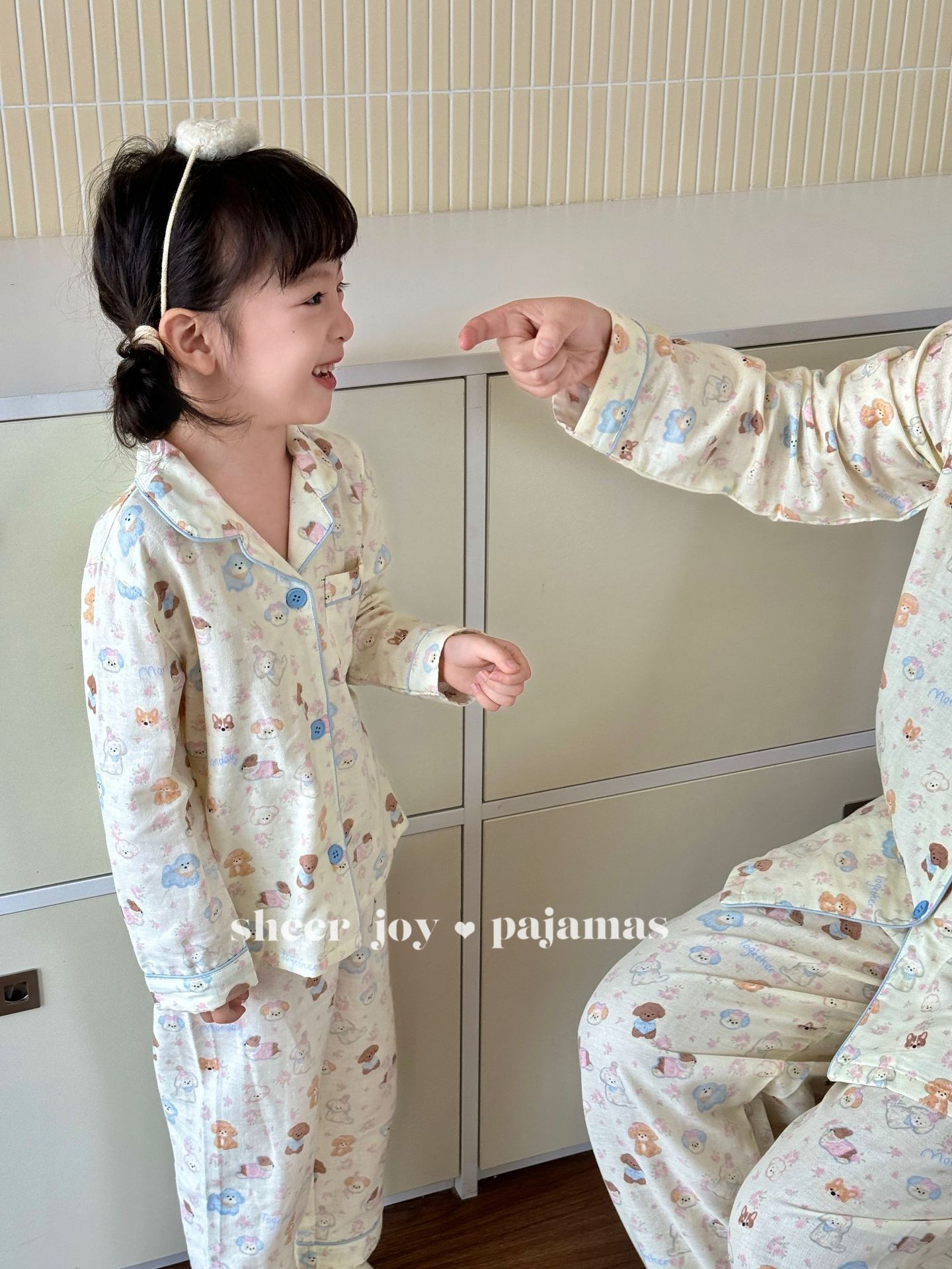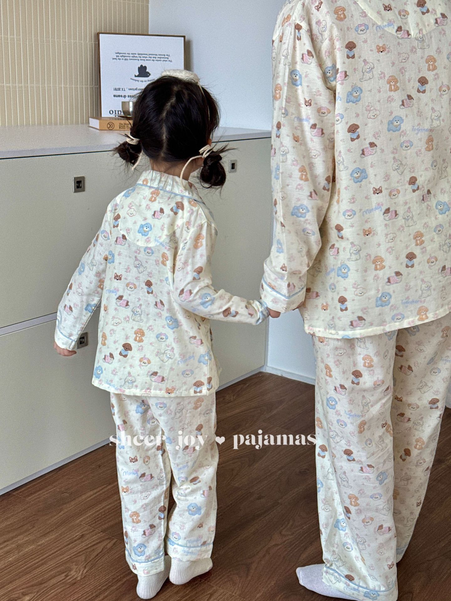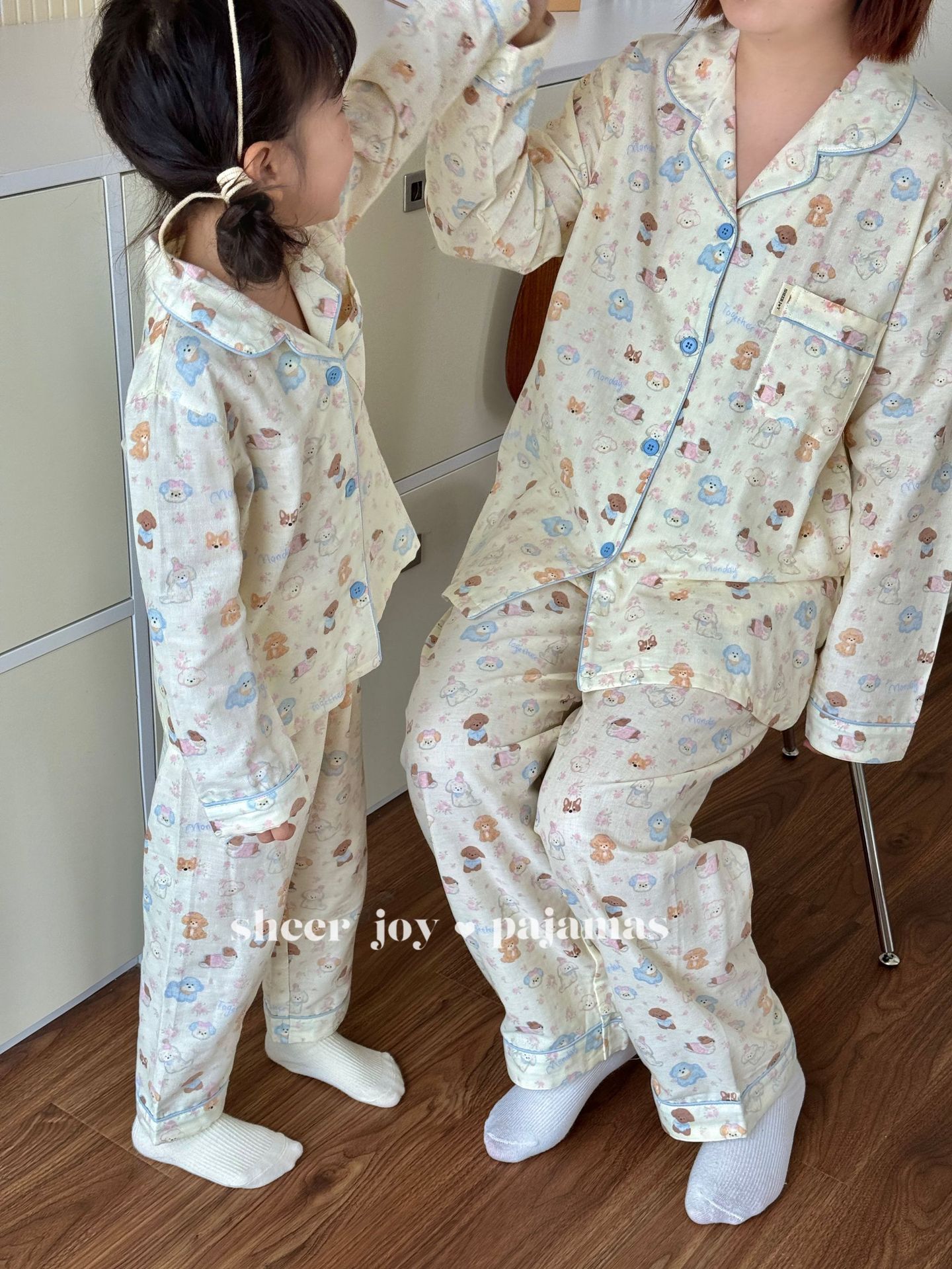 더블 레이어 원사 상감 조건 부모-아이 긴 소매 바지 홈 옷 소녀 세트 퍼프 개