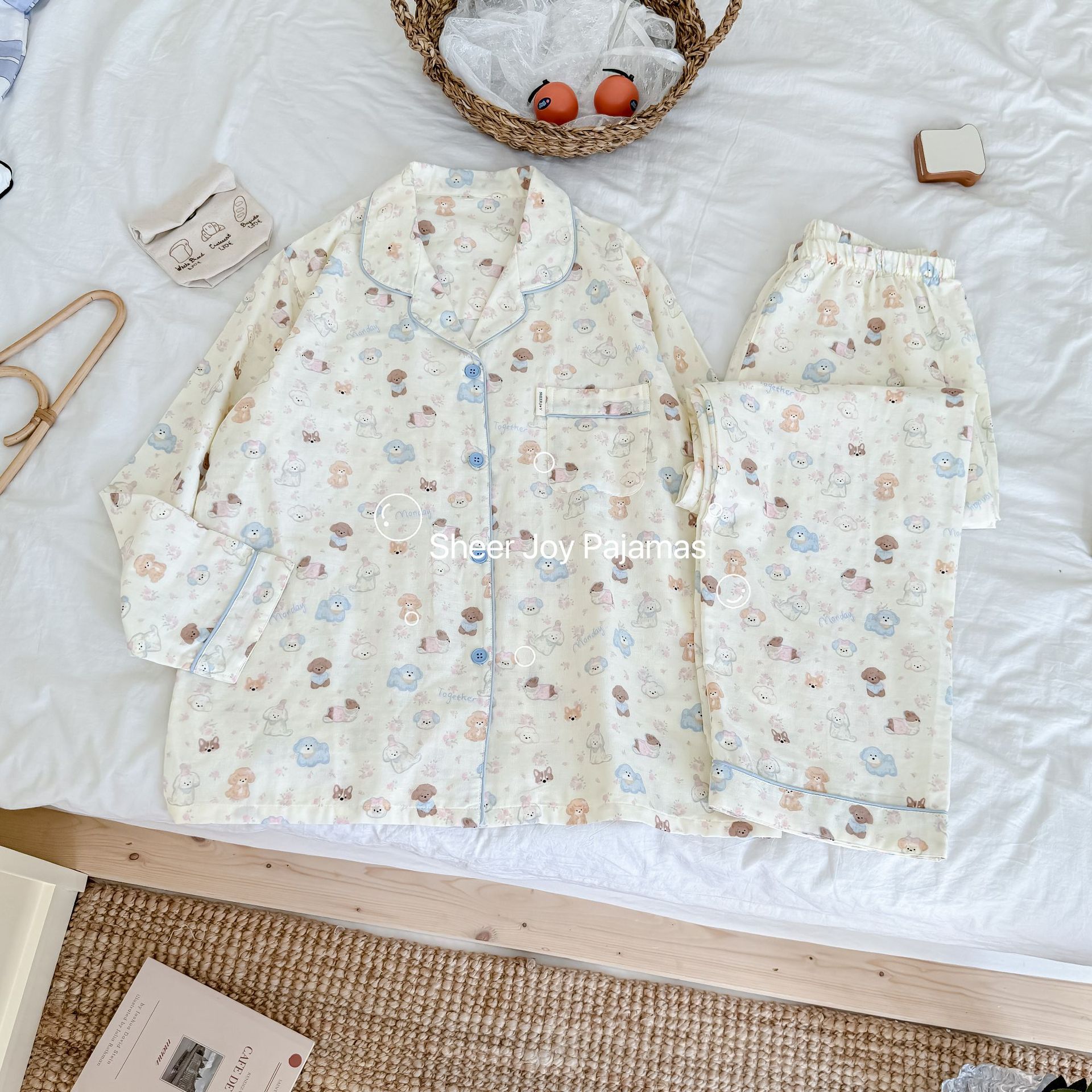 더블 레이어 원사 상감 조건 부모-아이 긴 소매 바지 홈 옷 소녀 세트 퍼프 개스토어 가기