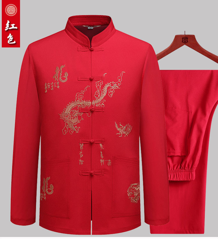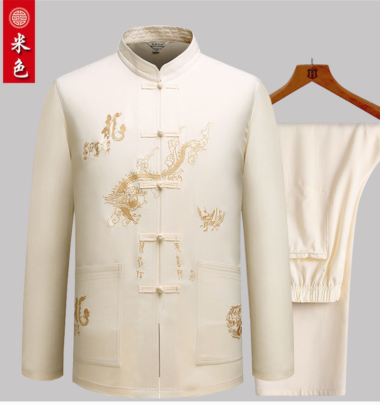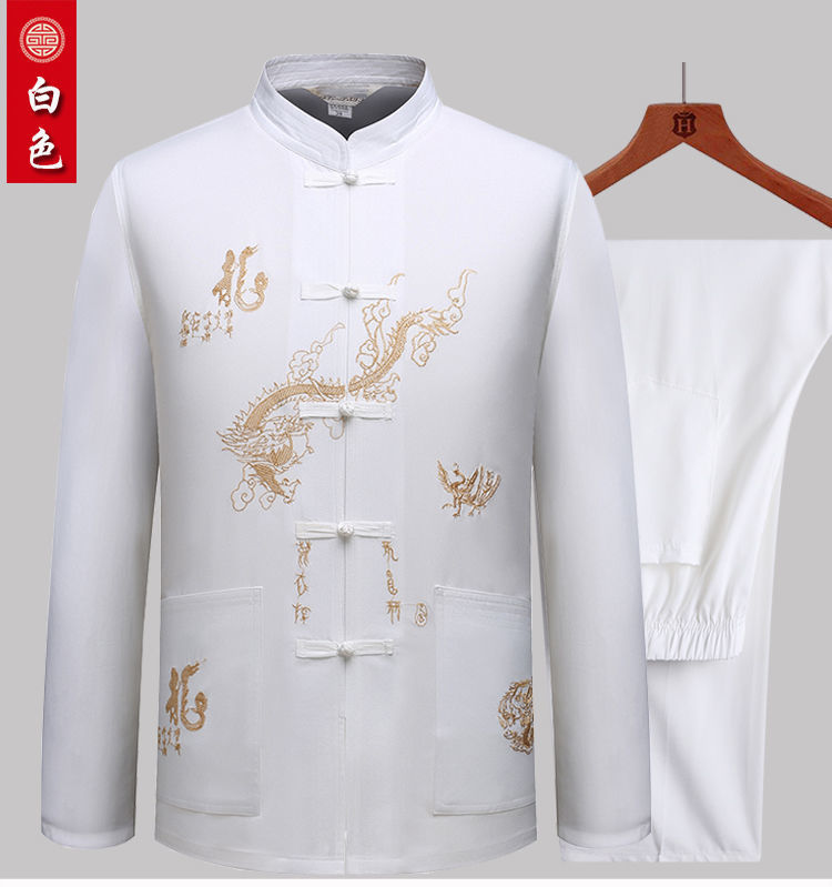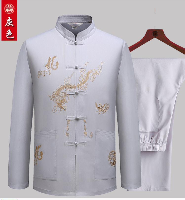 중년 및 노인 남성용 당나라 정장, 중국 전통 의상, 봄 여름 아빠 긴팔 셔츠 정장, 할아버지 반팔 태극권 아침 운동복