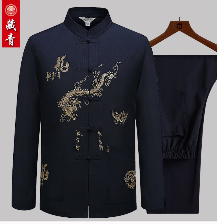 중년 및 노인 남성용 당나라 정장, 중국 전통 의상, 봄 여름 아빠 긴팔 셔츠 정장, 할아버지 반팔 태극권 아침 운동복스토어 가기