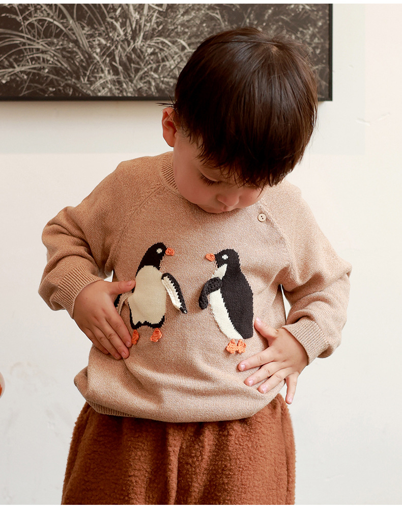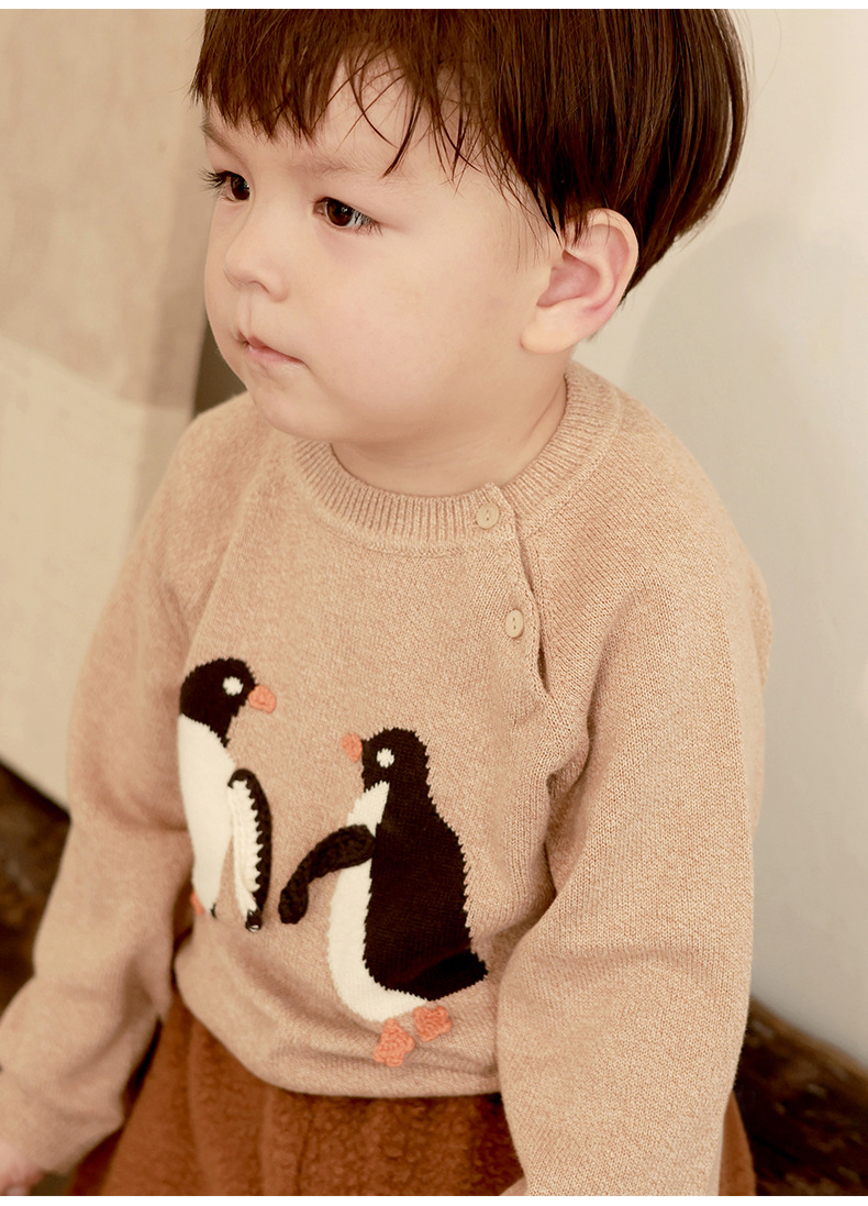 영유아 만화 긴팔 스웨터 2025 가을, 겨울 새 소년과 소녀 탑 아기 피부 친화적 인 따뜻한 아동 의류스토어 가기