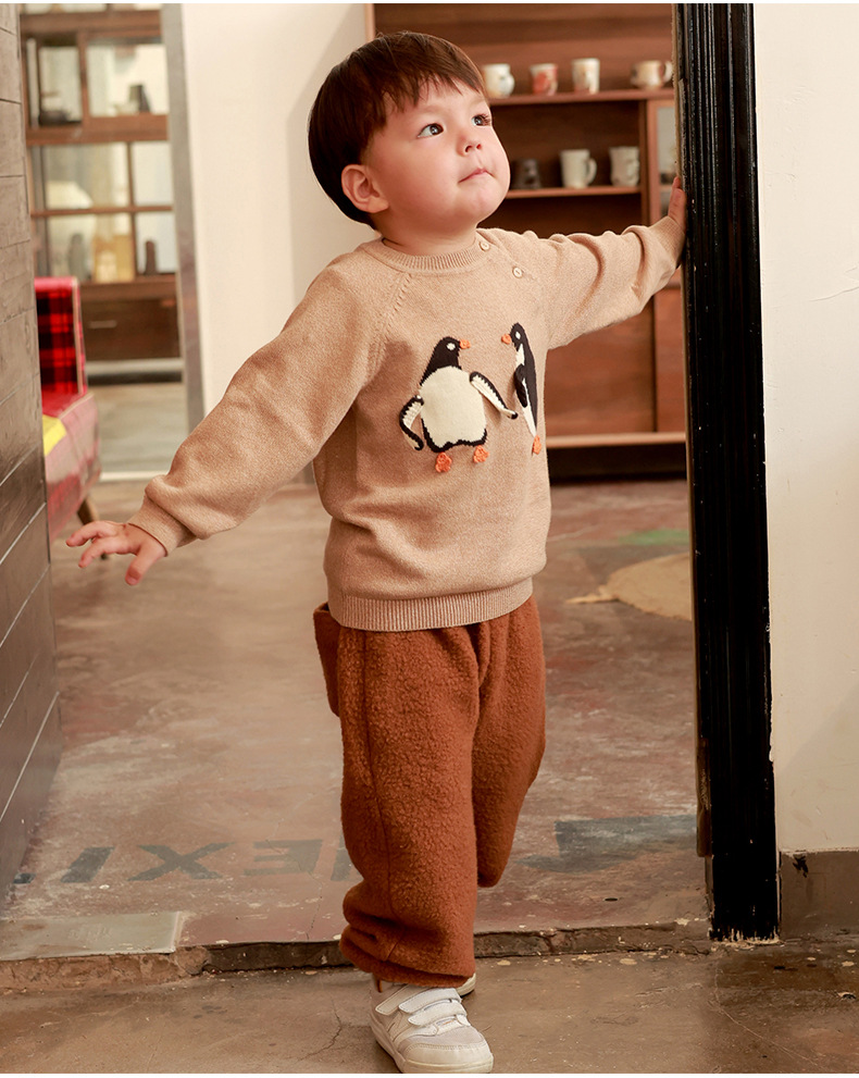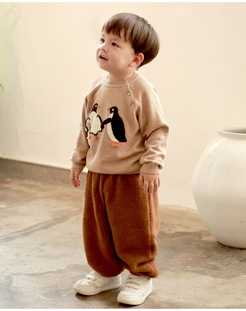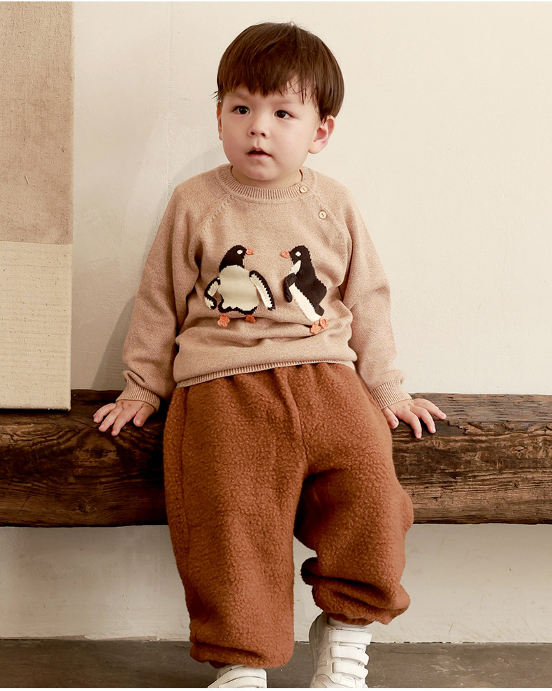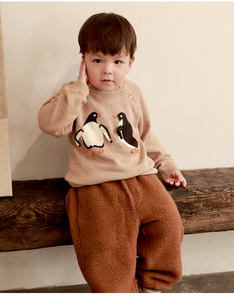 영유아 만화 긴팔 스웨터 2025 가을, 겨울 새 소년과 소녀 탑 아기 피부 친화적 인 따뜻한 아동 의류
