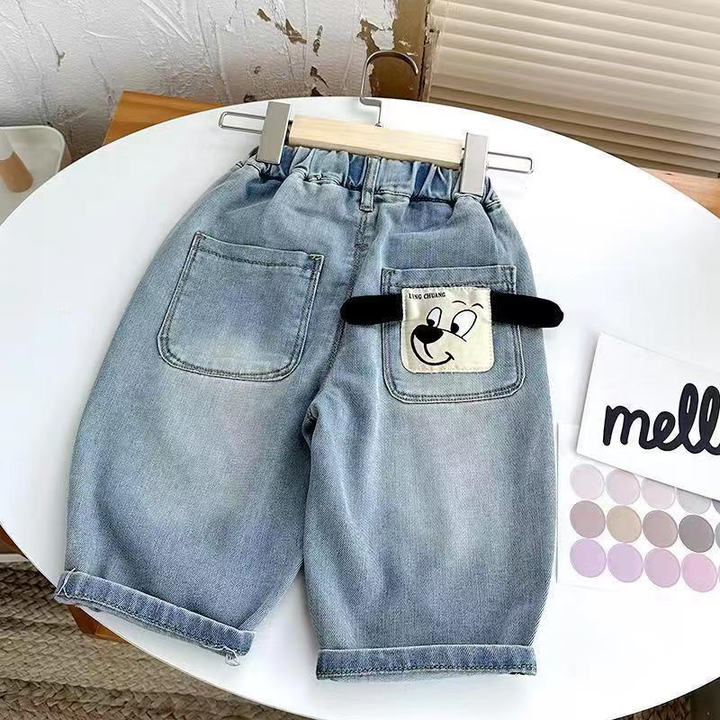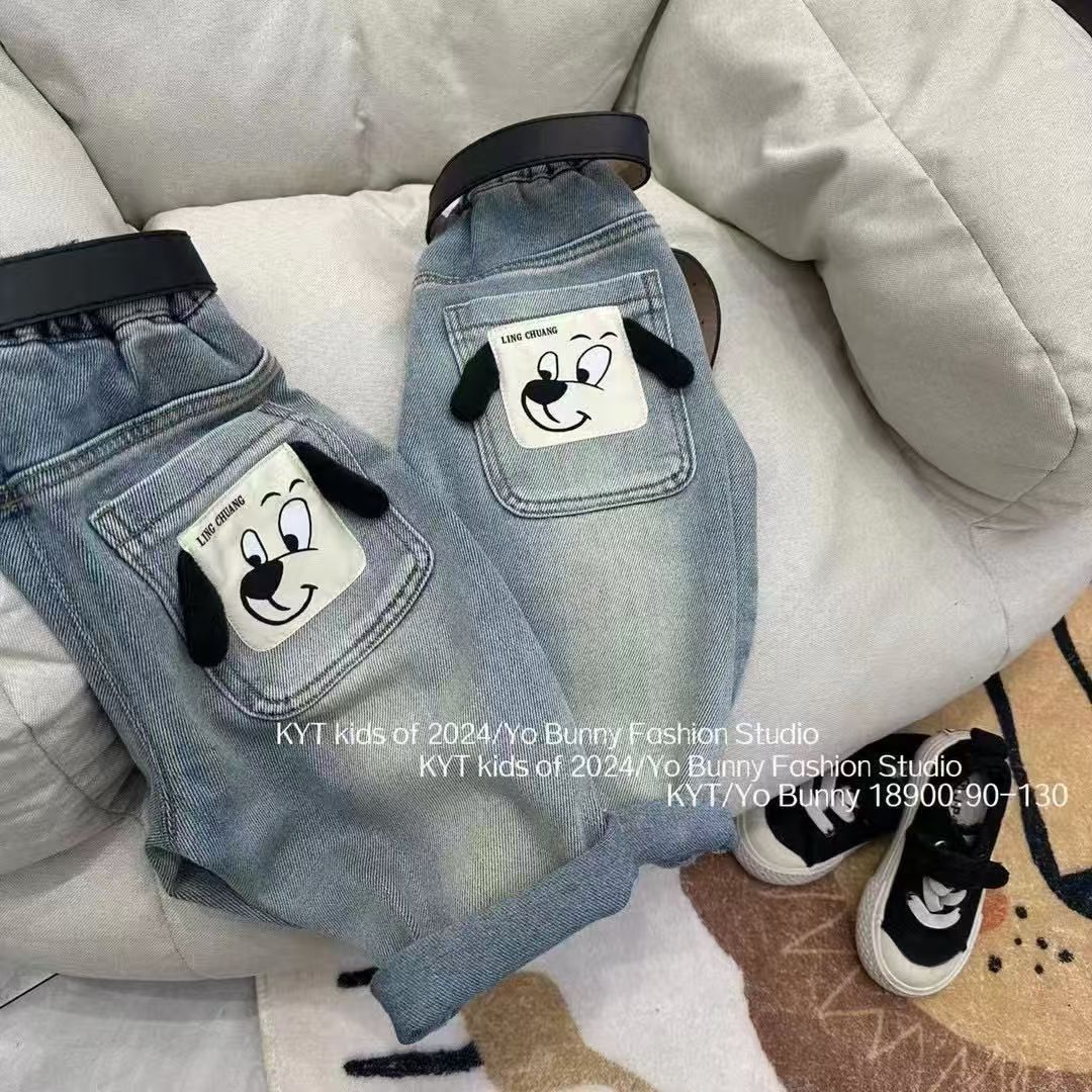 새로운 소년과 소녀 2024 청바지 서양식 부드러운 어린이 느슨한 만화 피부 친화적 인 엘라스토 바지스토어 가기