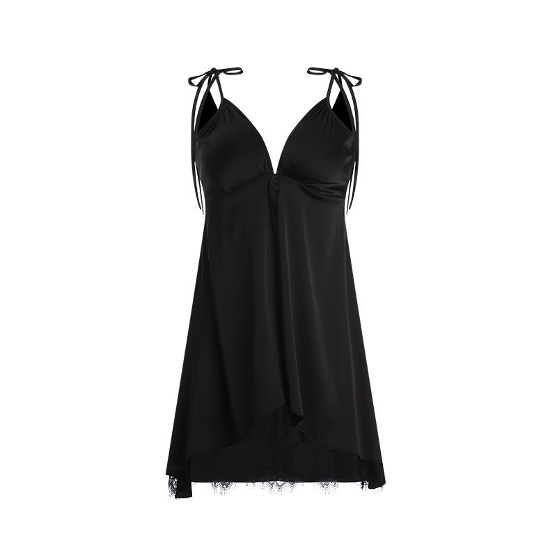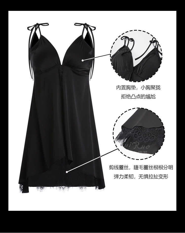 2024 아이스 실크 섹시 잠옷 여성용 등받이 없는 레이스 미니스커트 가슴 패드 포함 투피스 세트 슬리밍 속이 빈 잠옷스토어 가기