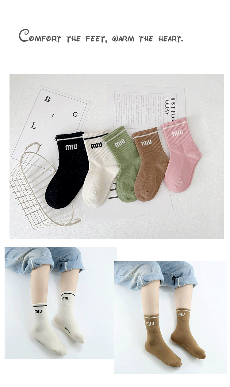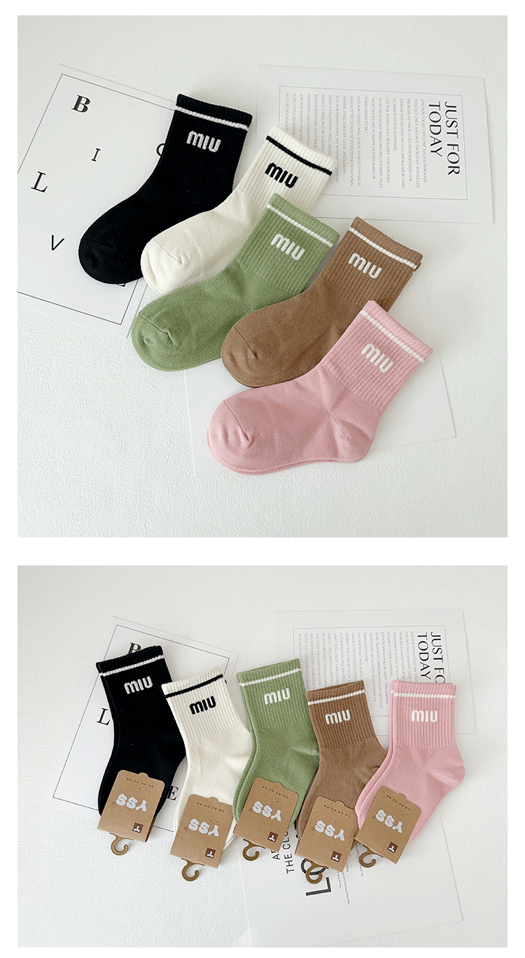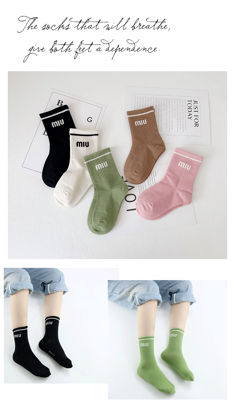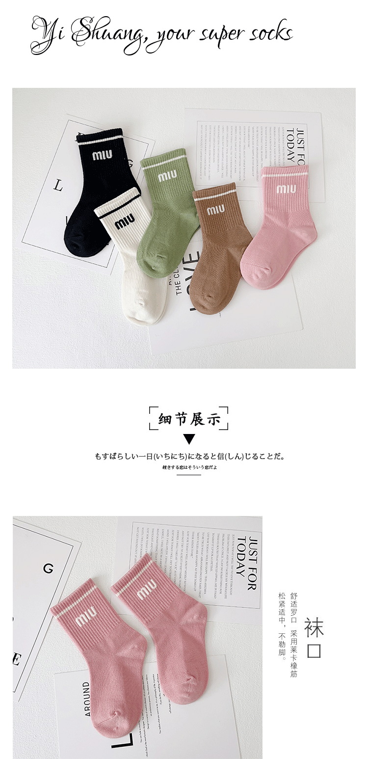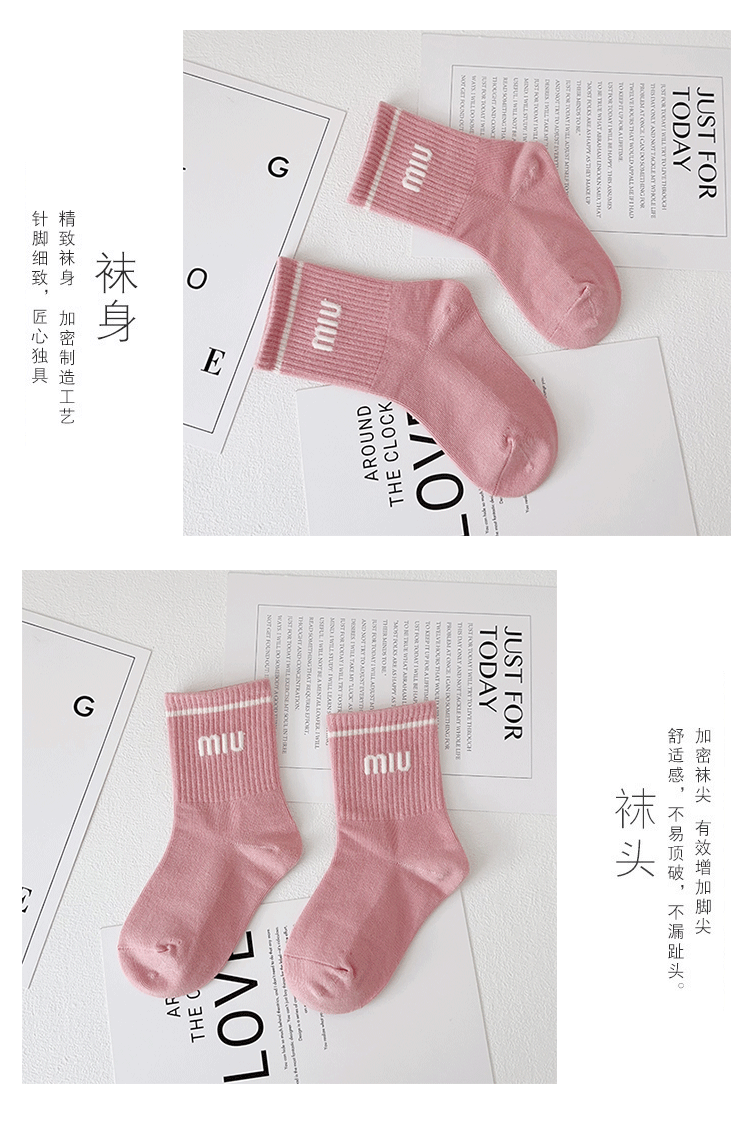 이쌍 어린이 양말 가을과 겨울 새 한국식 편지 중간 튜브 양말 빗 코튼 걸스 스포츠 양말 큰 어린이 유행 양말스토어 가기