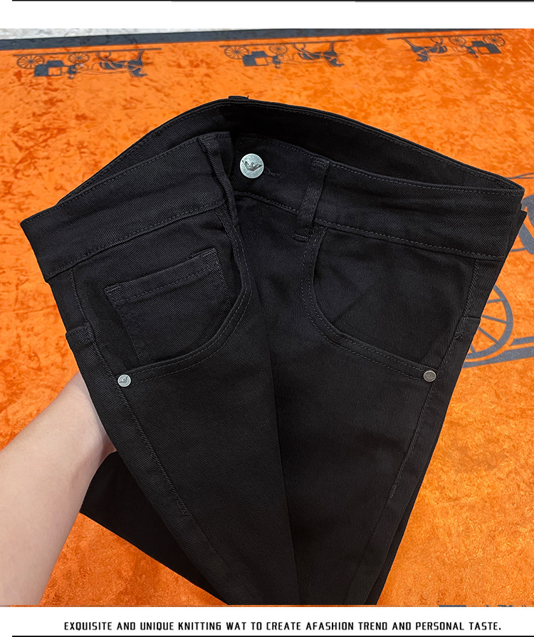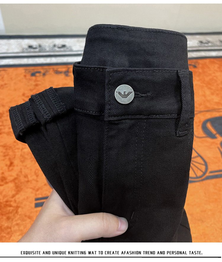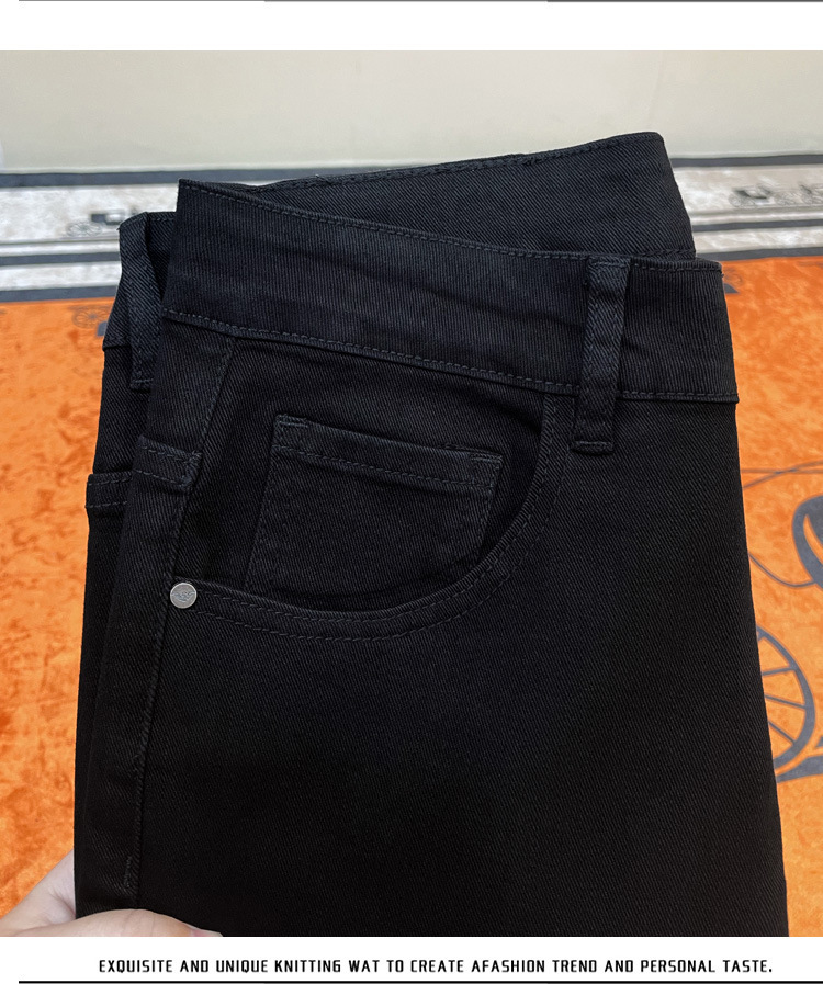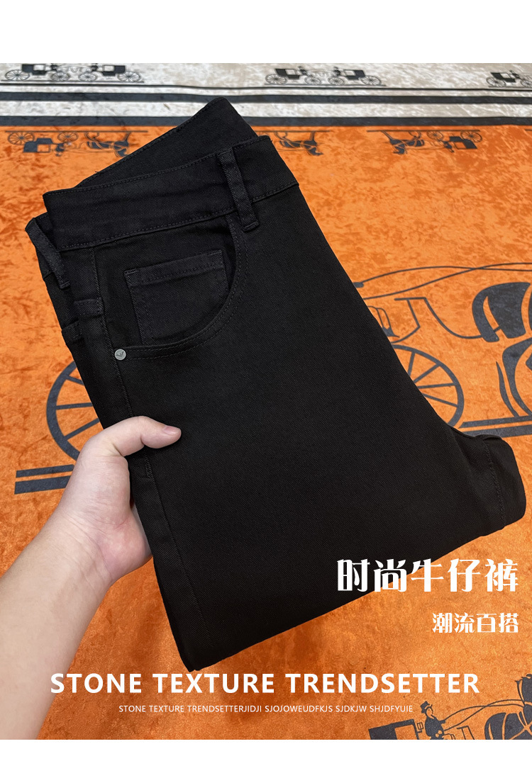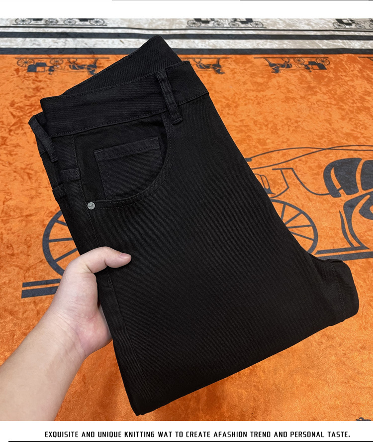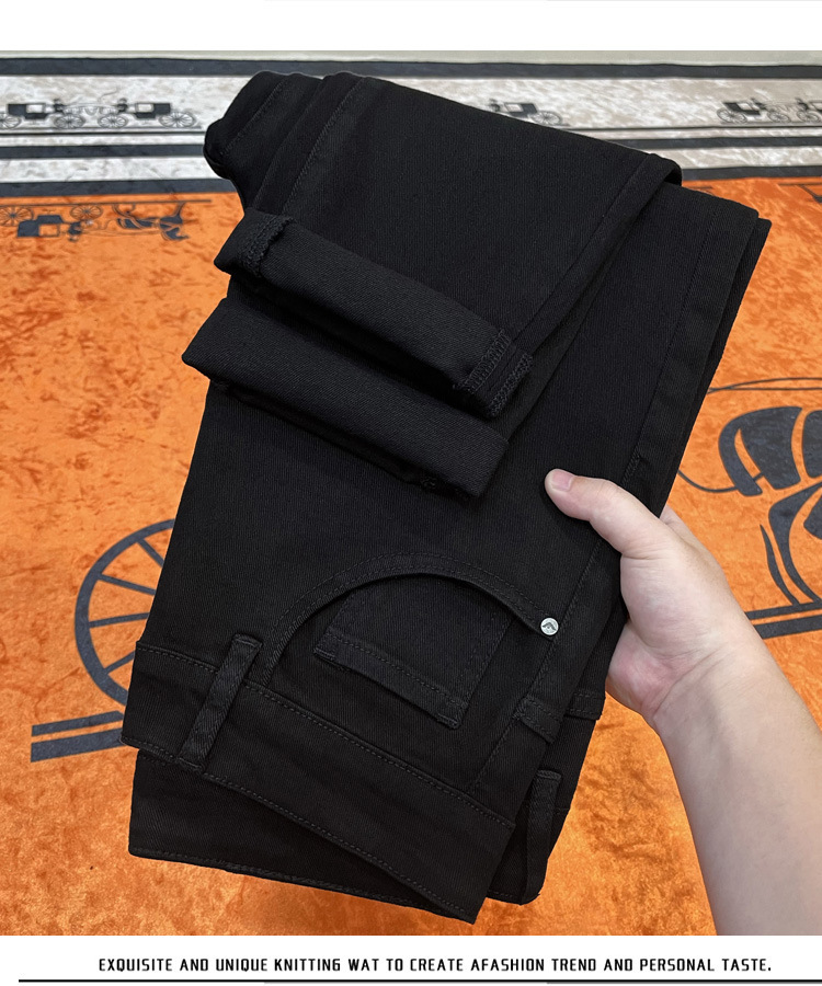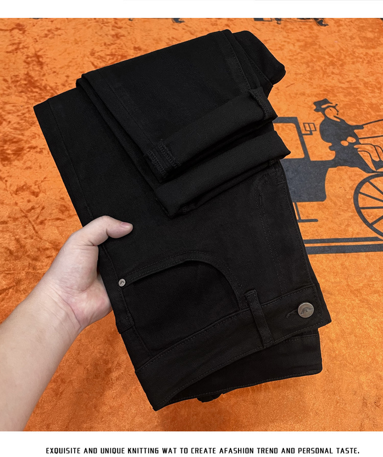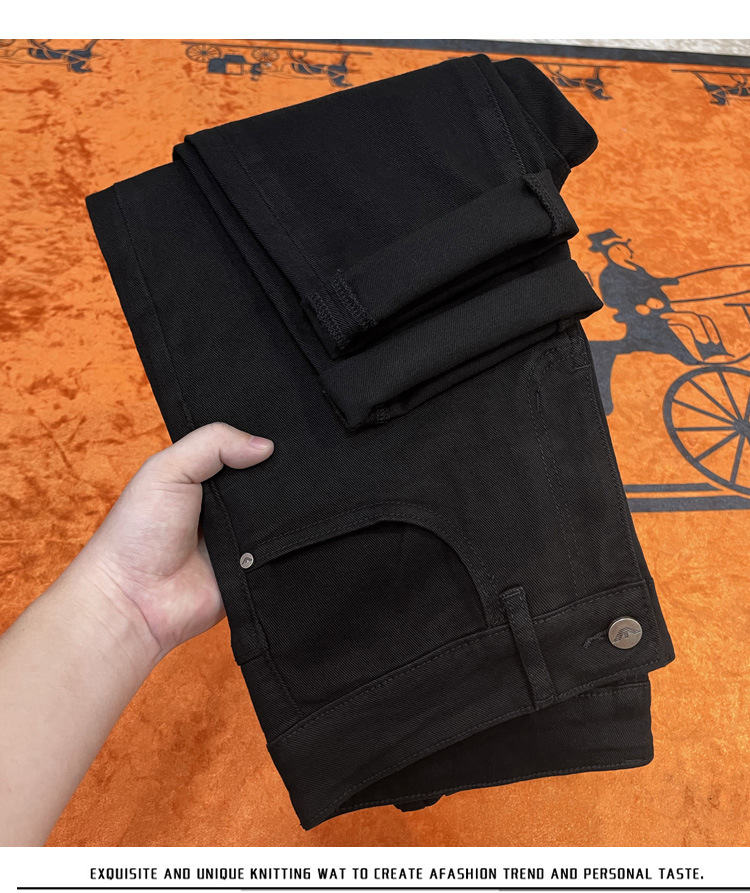 유럽 순수 블랙 청바지 남성용 봄과 가을 느슨한 직선형 한국식 세탁 스트레치 슬림 핏 캐주얼 롱 바지