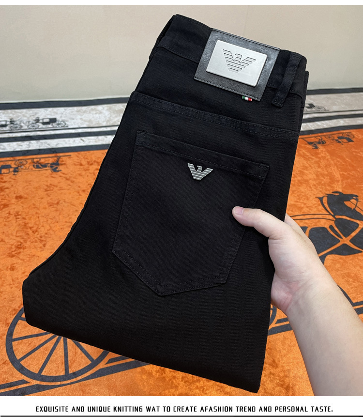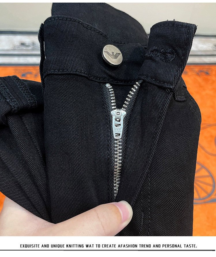 유럽 순수 블랙 청바지 남성용 봄과 가을 느슨한 직선형 한국식 세탁 스트레치 슬림 핏 캐주얼 롱 바지스토어 가기