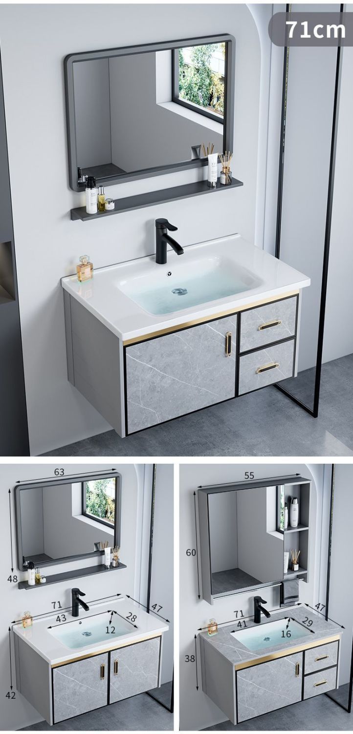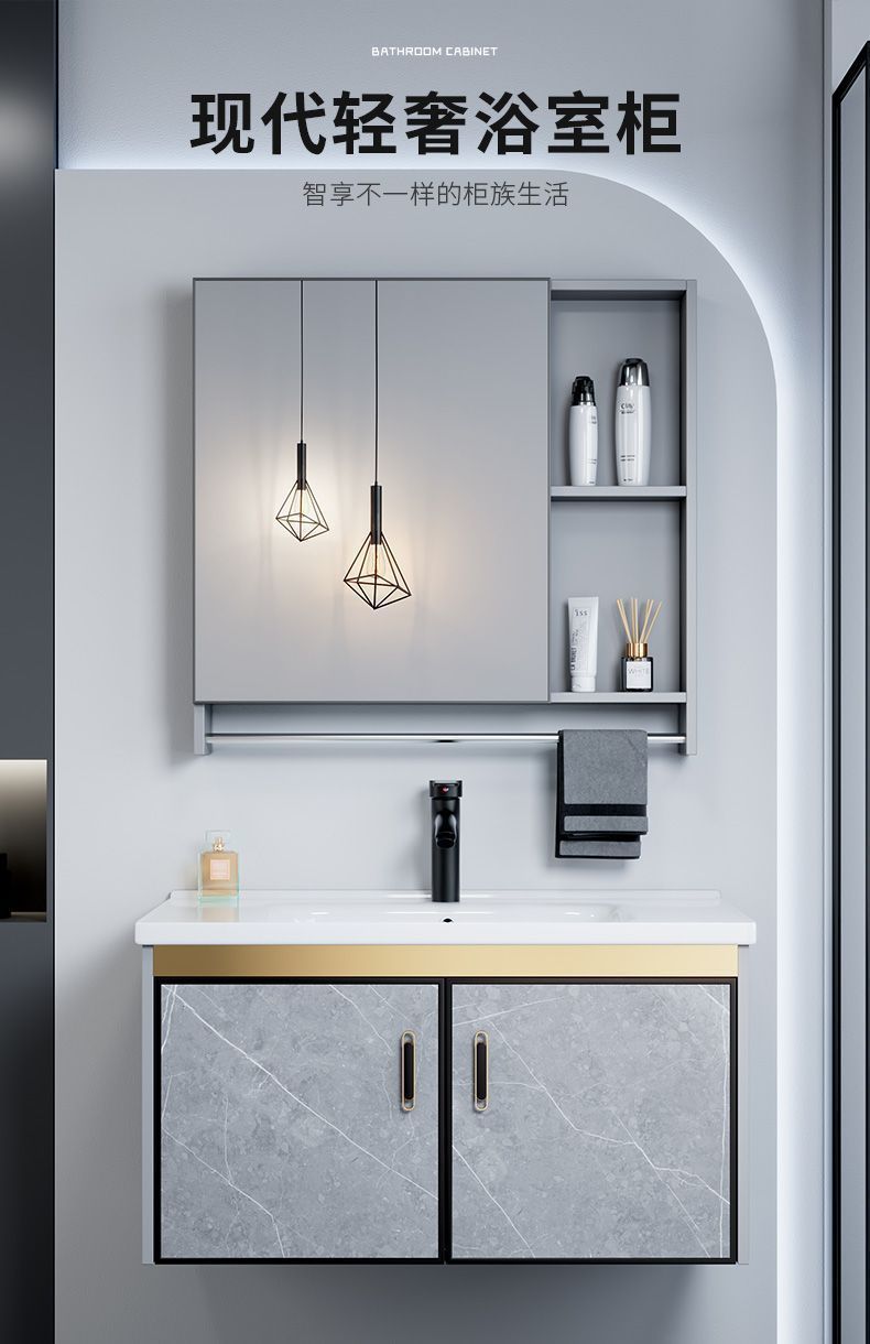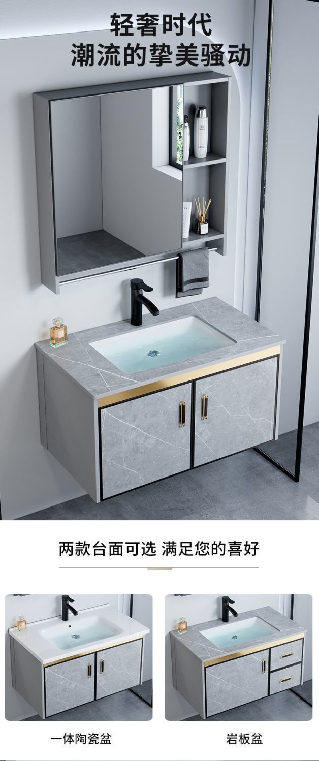 공간 알루미늄 욕실 내각 세면대 내각 조합 욕실 세면대 통합 세면대 현대 간단한 지능형스토어 가기