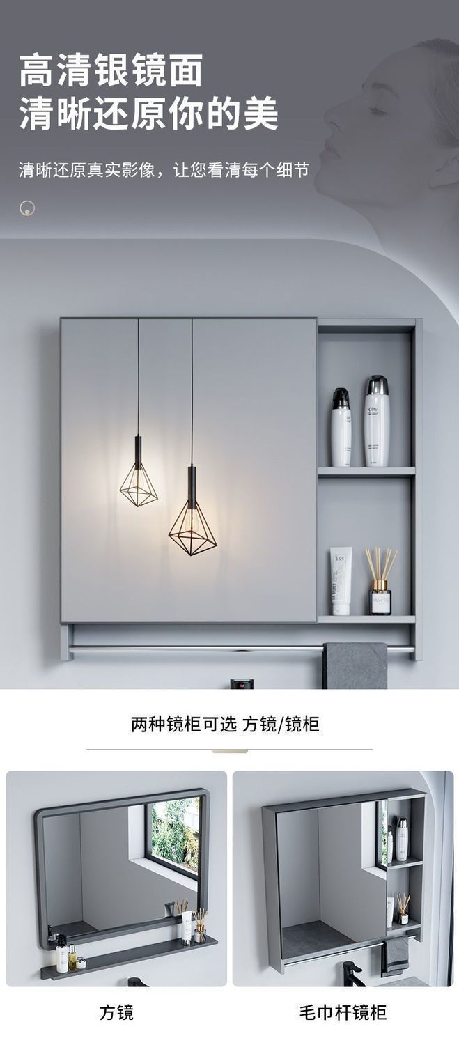 • %**∪+수건걸이 거울장 [수건걸이 추가] - 80*47 양문형 [슬레이트] 캐비닛 --- 홍완