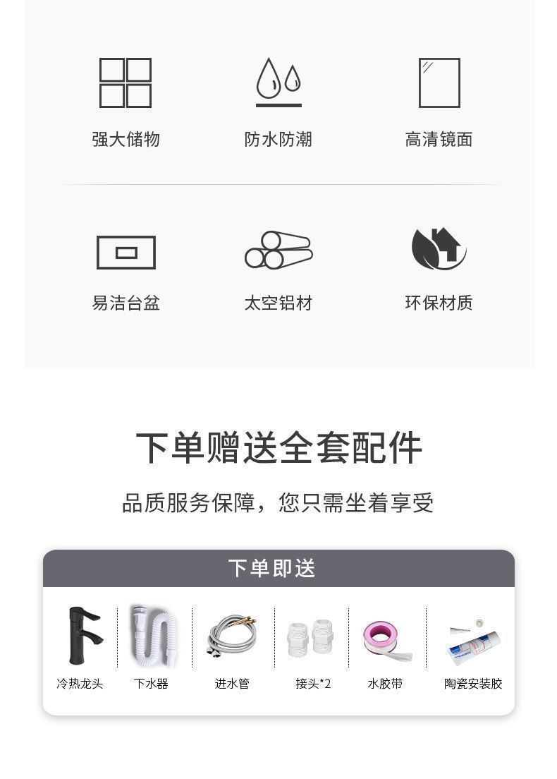 • %**∪+일반 거울장 [열림]-70*47 이중서랍 [세라믹 세면대] 캐비닛---Hongwan