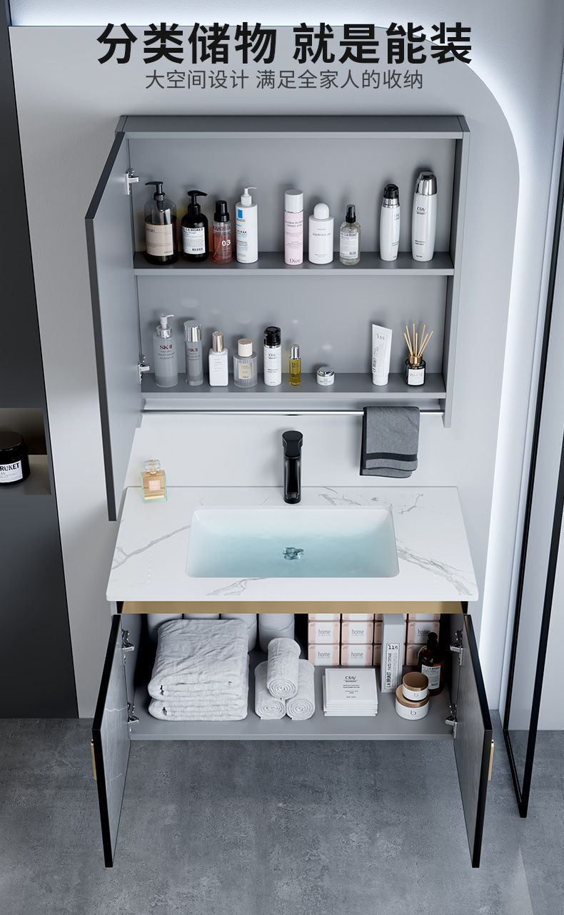 • %**∪+ 센서 거울 캐비닛 [센서 조명]-80*47 이중 서랍 [암석 플레이트] 캐비닛 --- 홍완